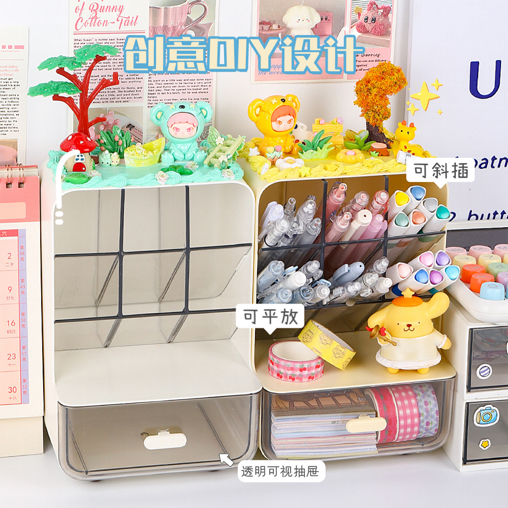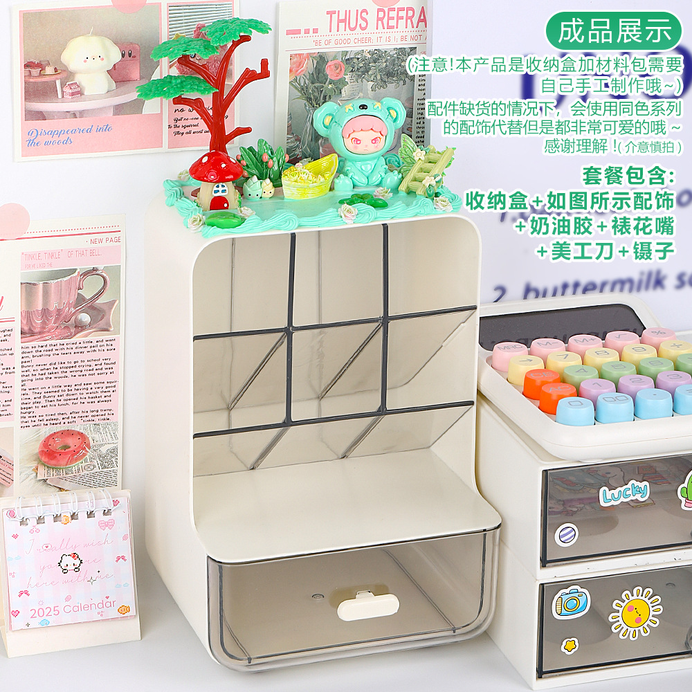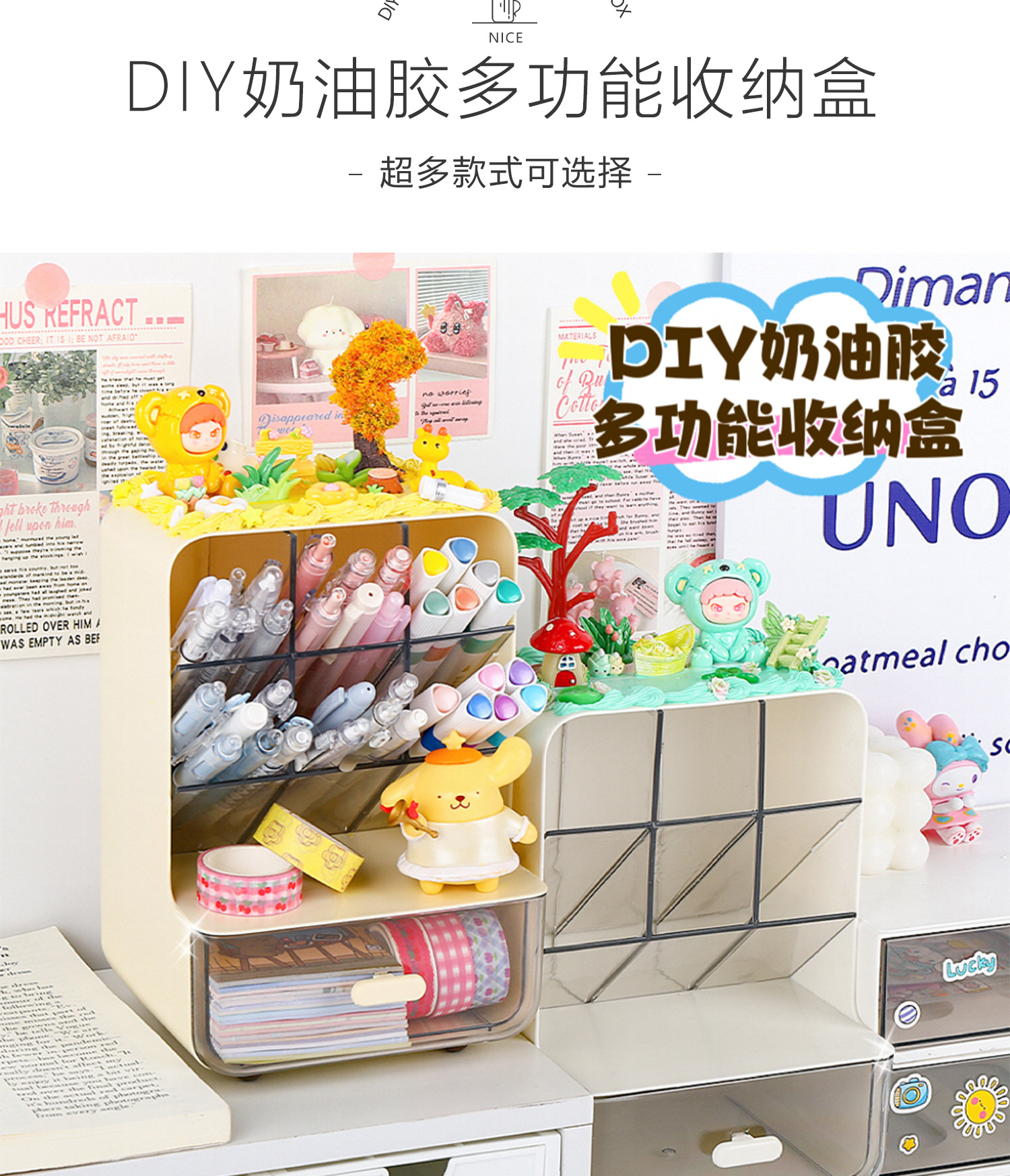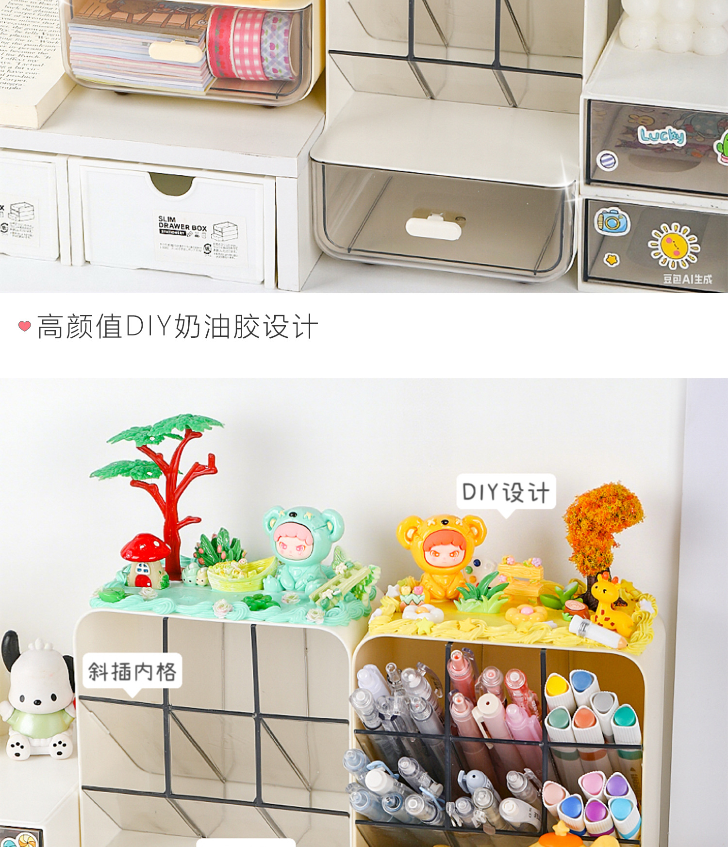 手工diy奶油胶桌面多功能收纳盒学生笔筒化妆品文具抽屉式置物架