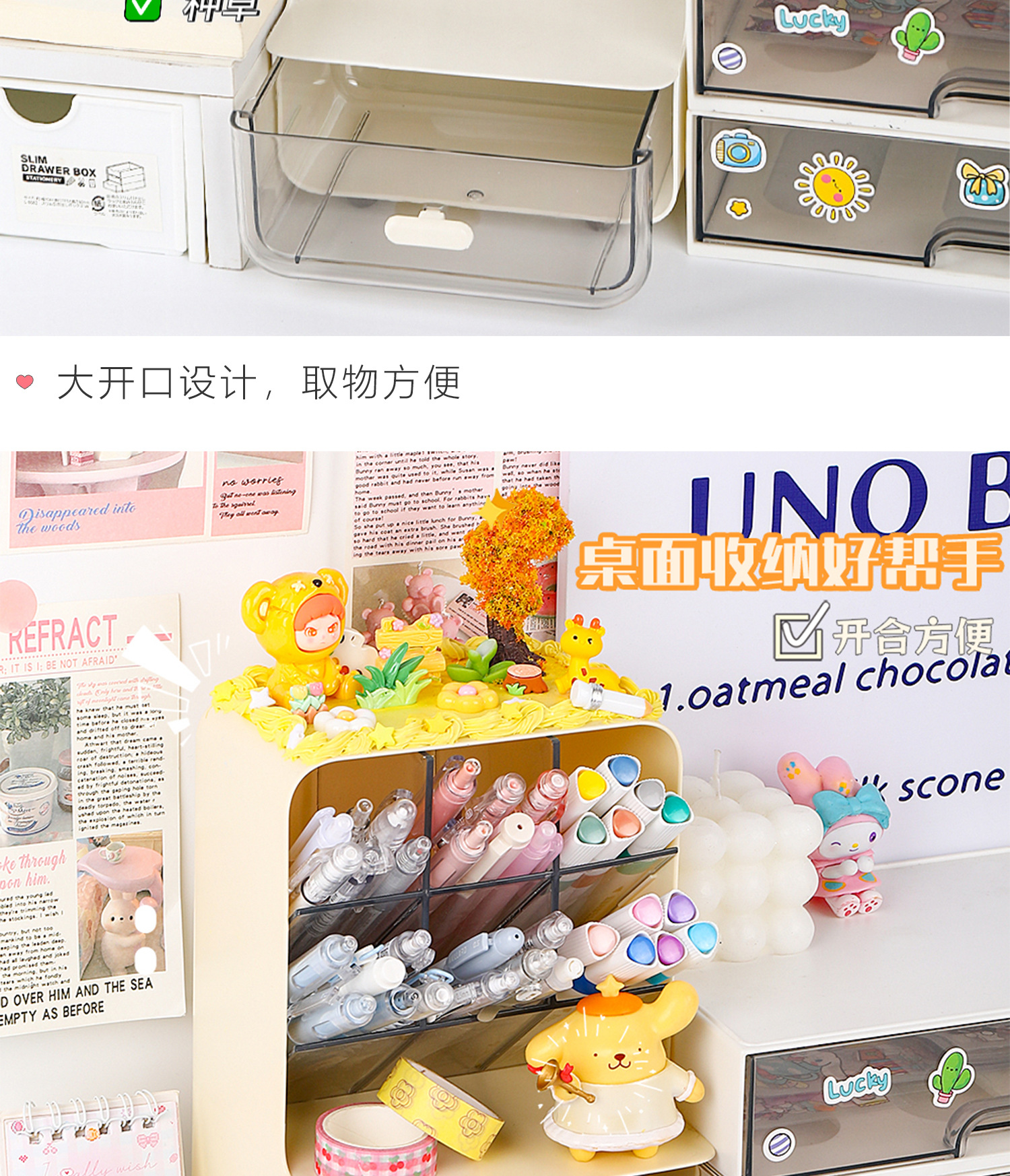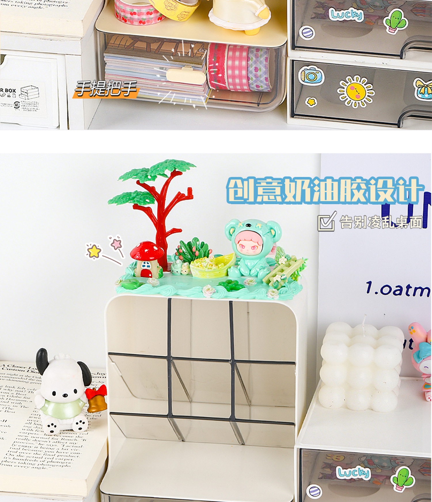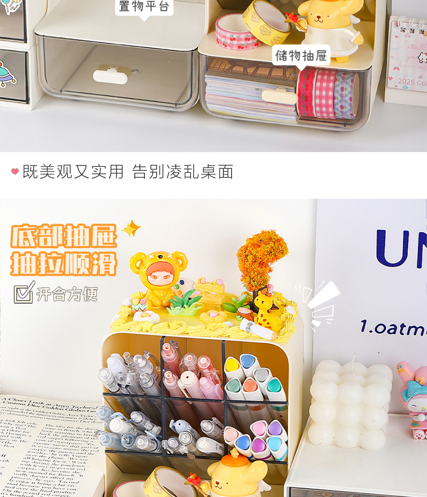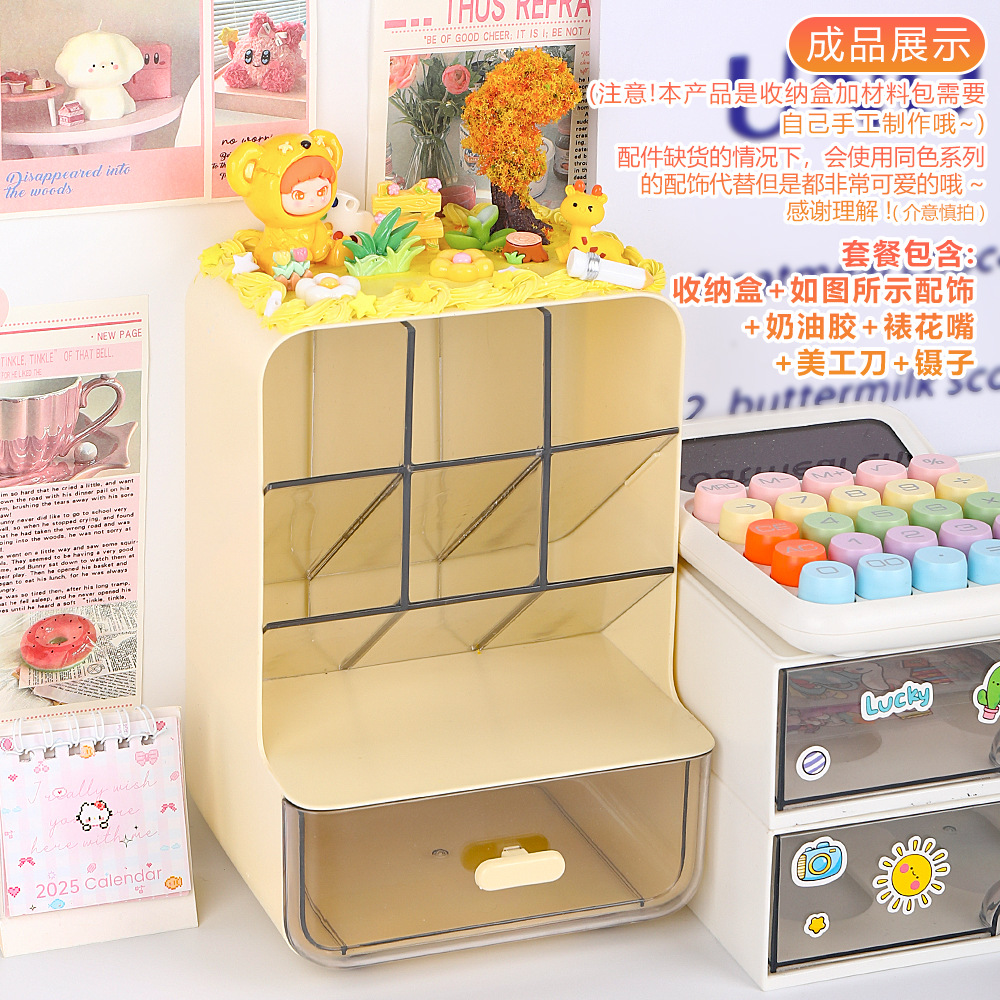 手工diy奶油胶桌面多功能收纳盒学生笔筒化妆品文具抽屉式置物架