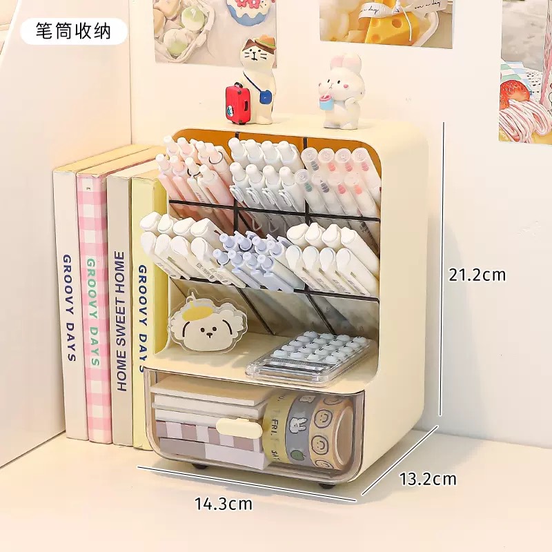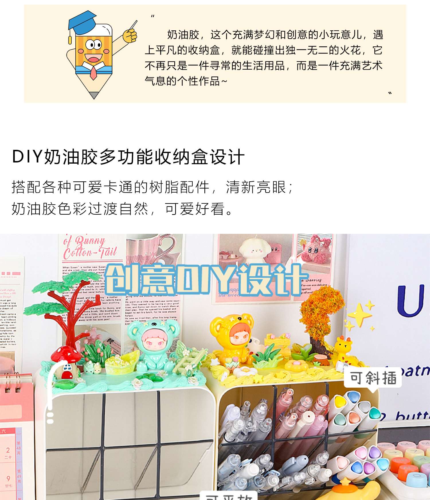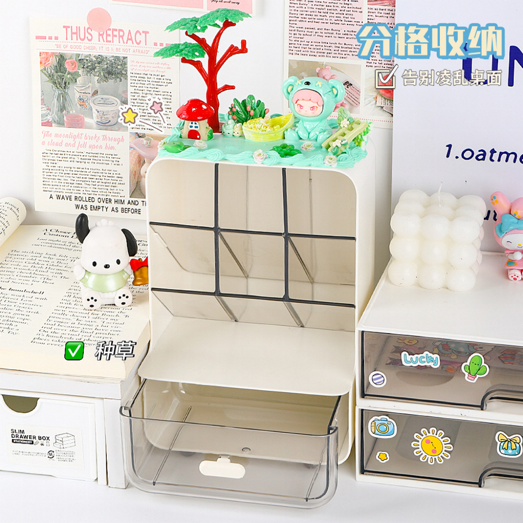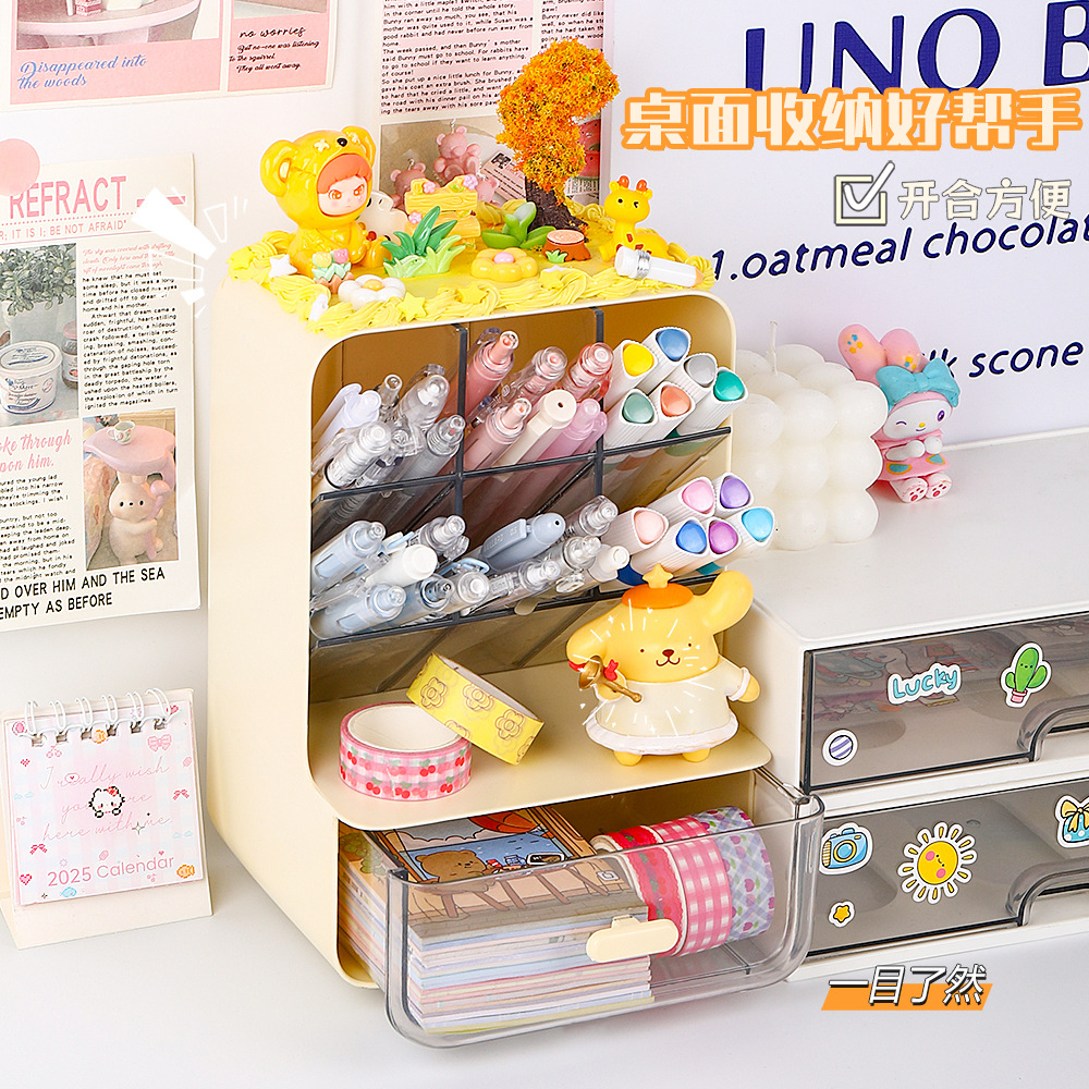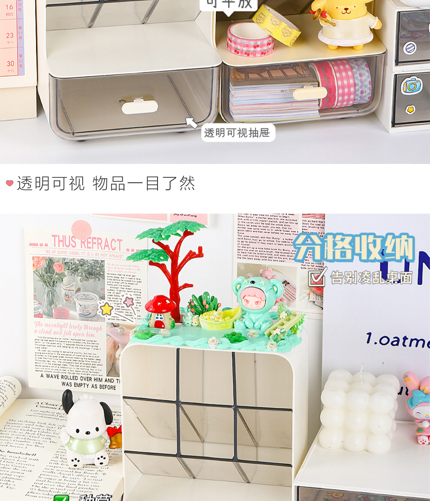 手工diy奶油胶桌面多功能收纳盒学生笔筒化妆品文具抽屉式置物架