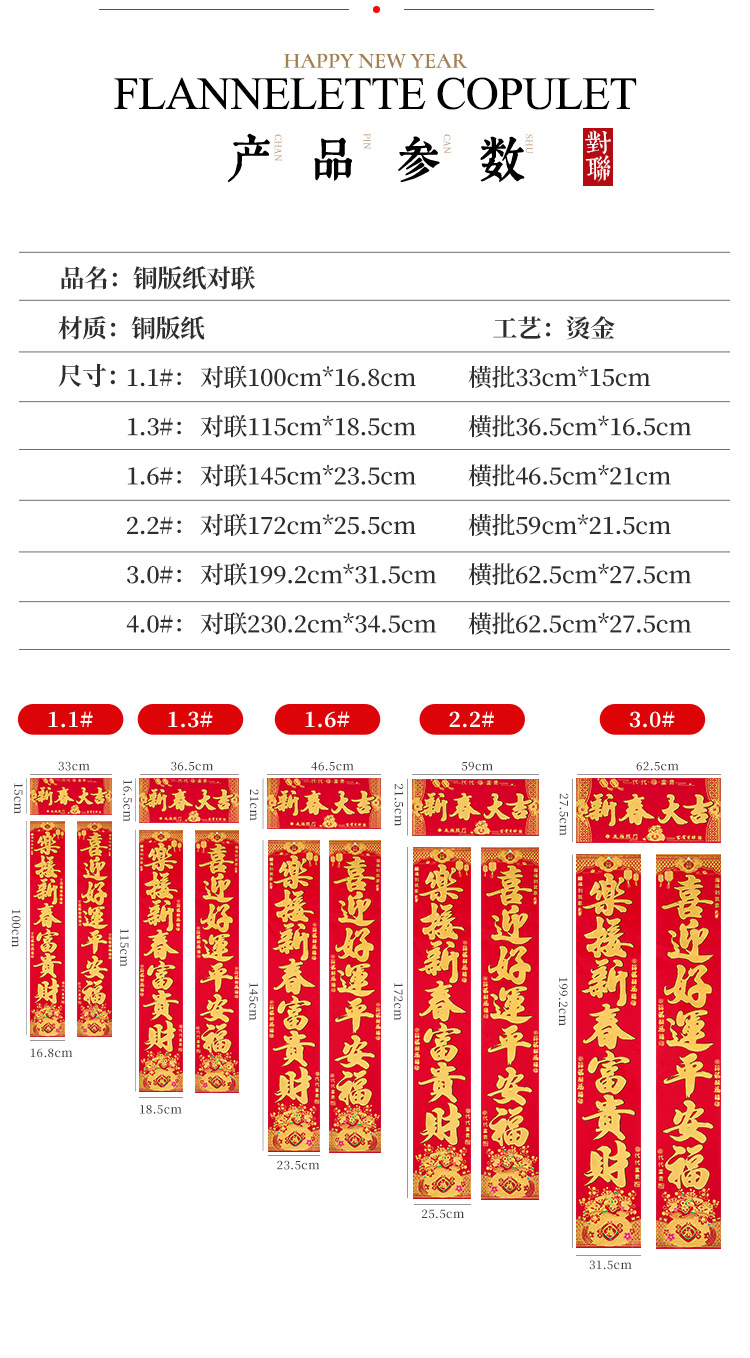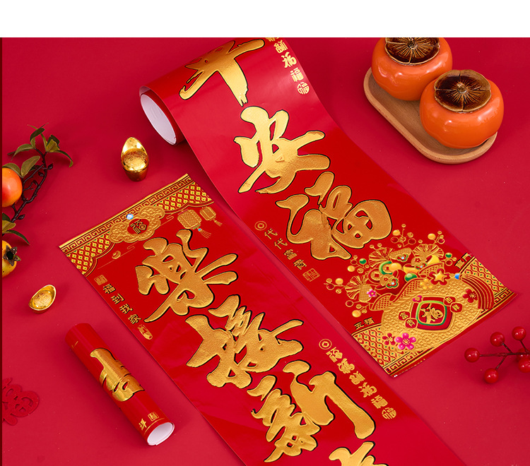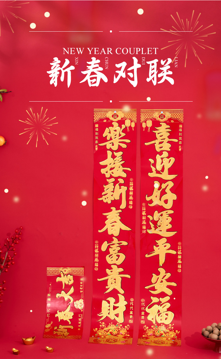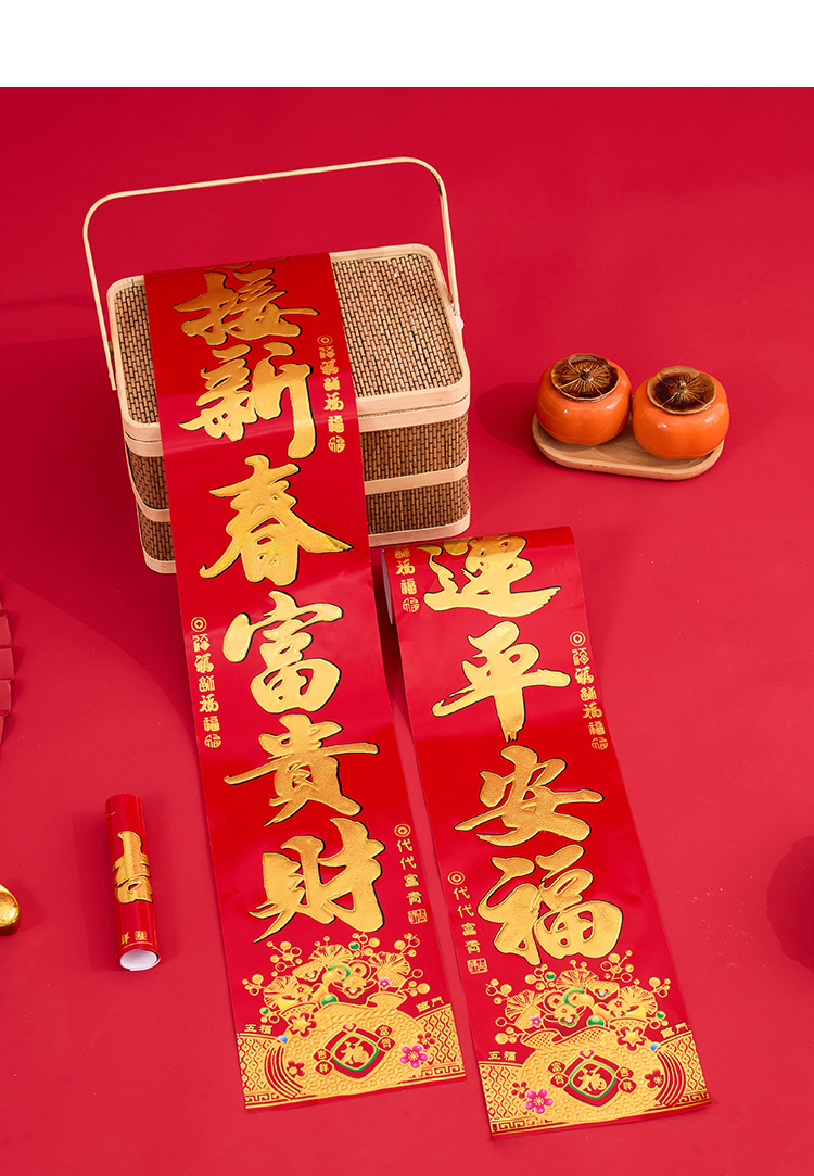 春节对联2026年铜版纸金字对联过年农村大门装饰贴纸年画装饰春联