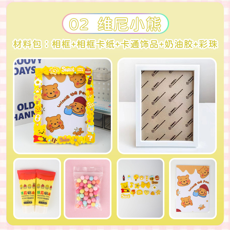 手工diy相册材料包奶油胶粘贴创意照片相框 创意益智卡通摆件玩具
