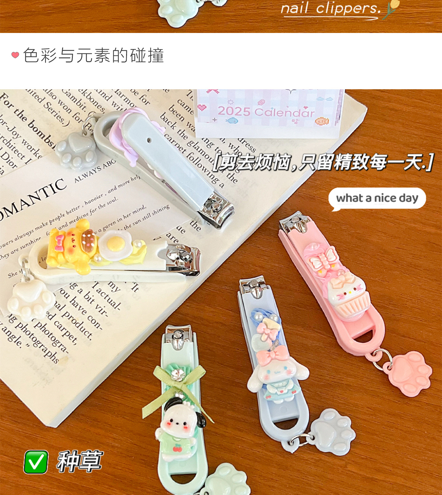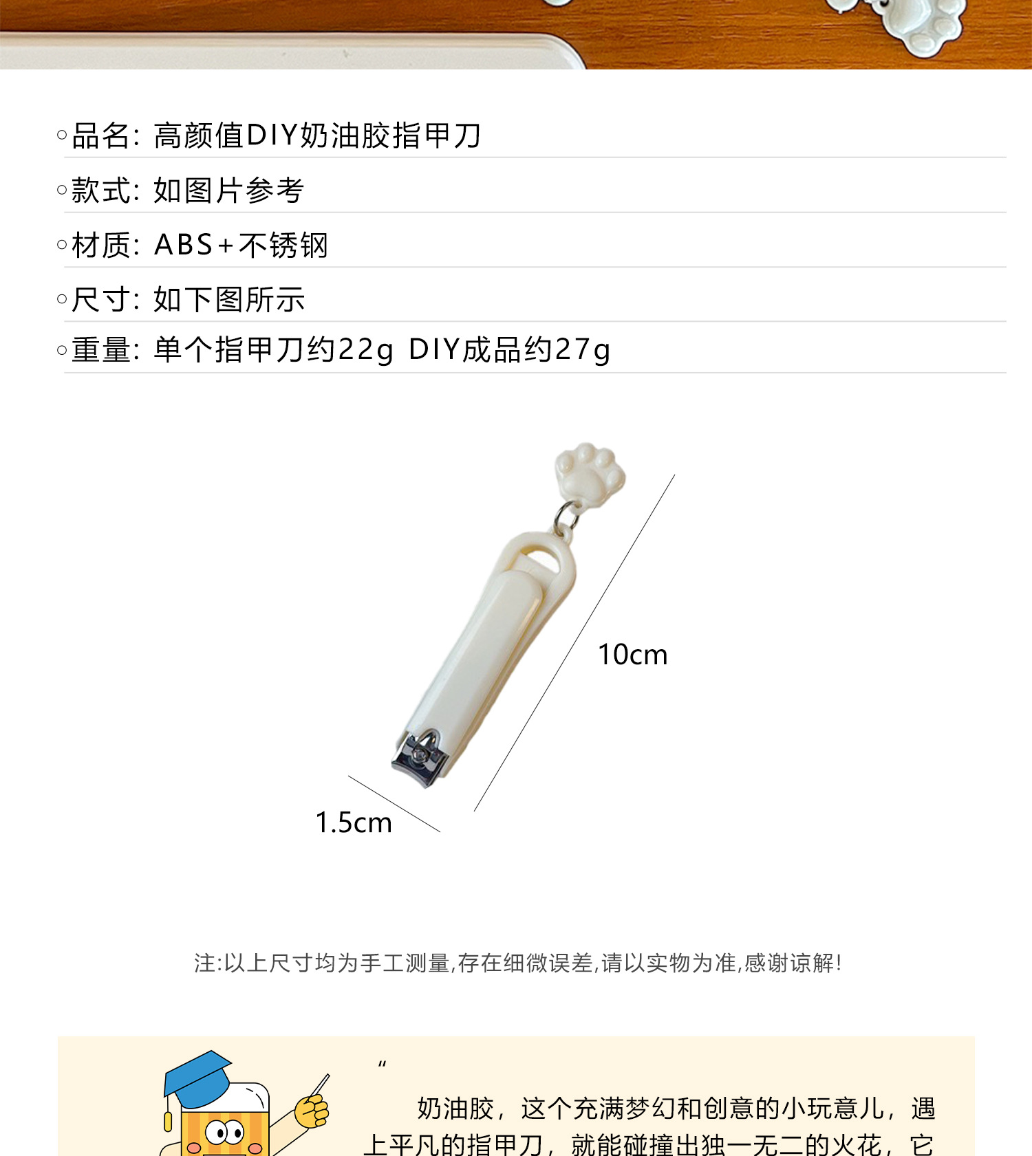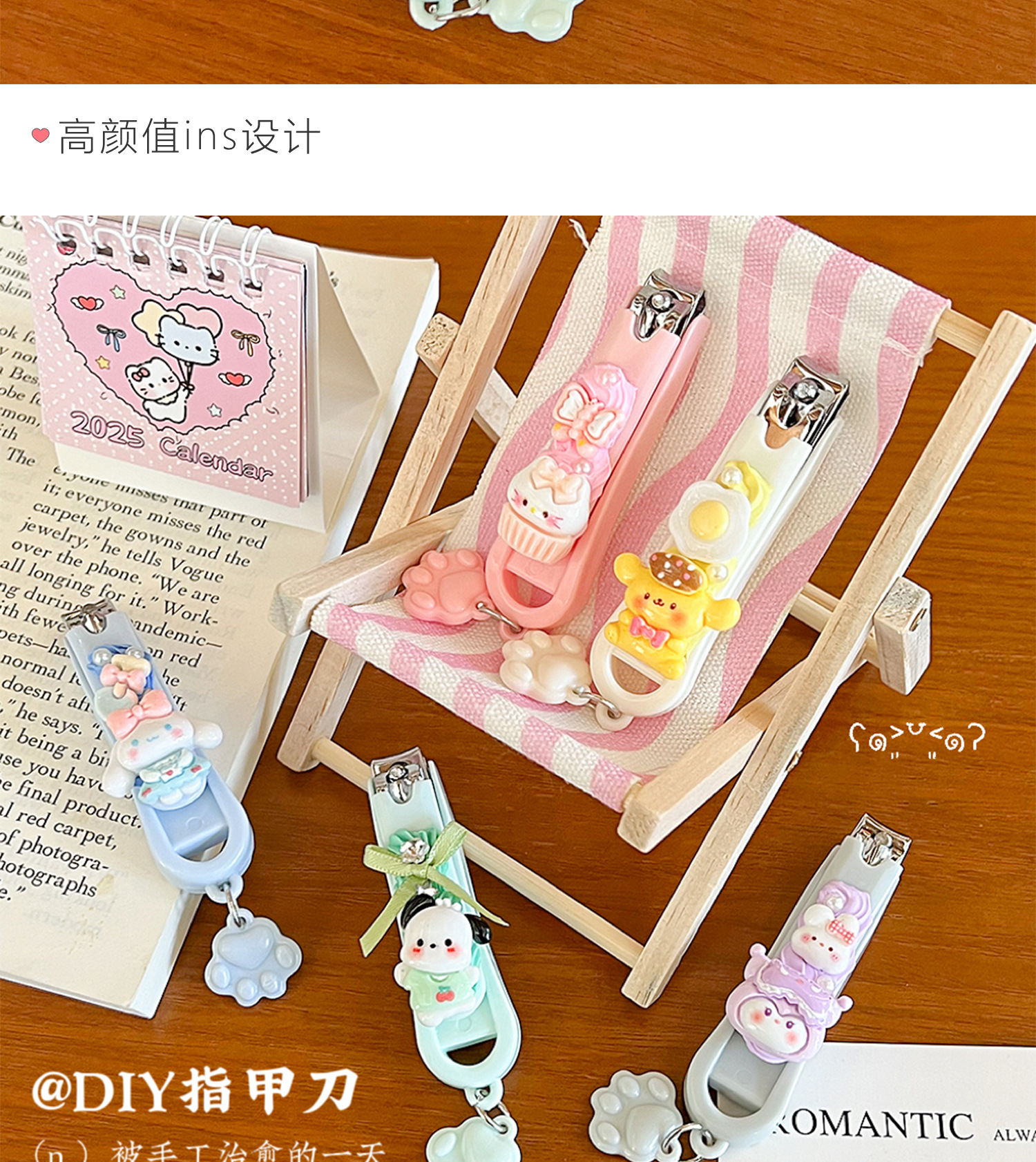 手工奶油胶diy卡通kt猫指甲剪指甲刀高颜值便携式学生家用指甲钳
