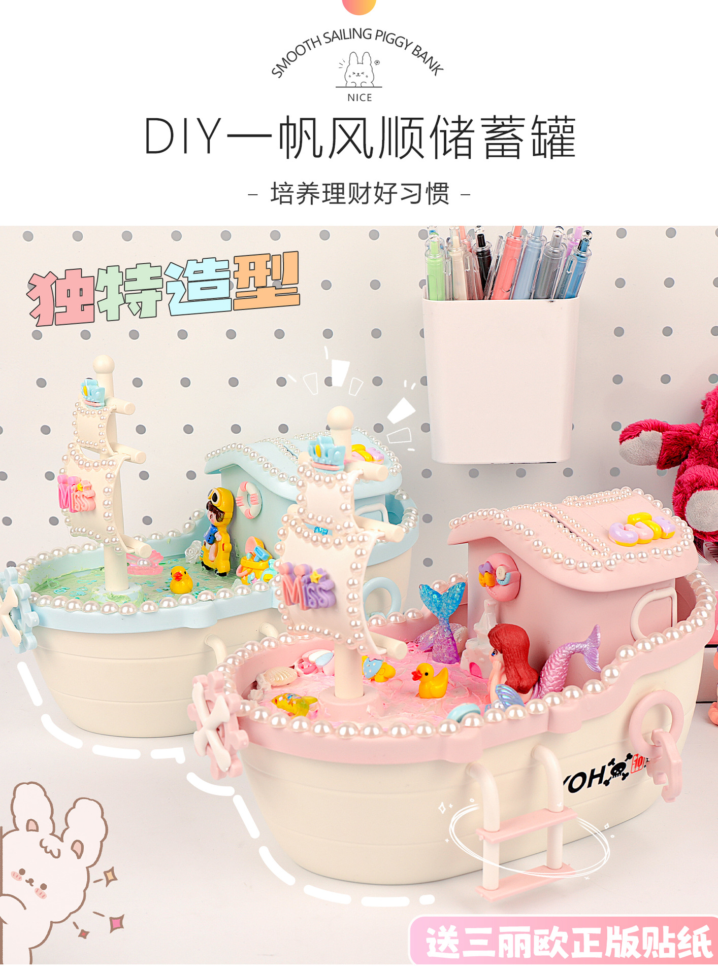 海盗船存钱罐儿童手工diy储蓄罐男孩女孩套装节日礼物储物投币