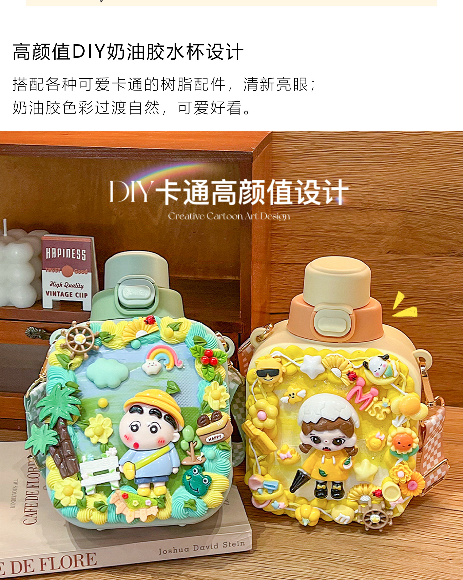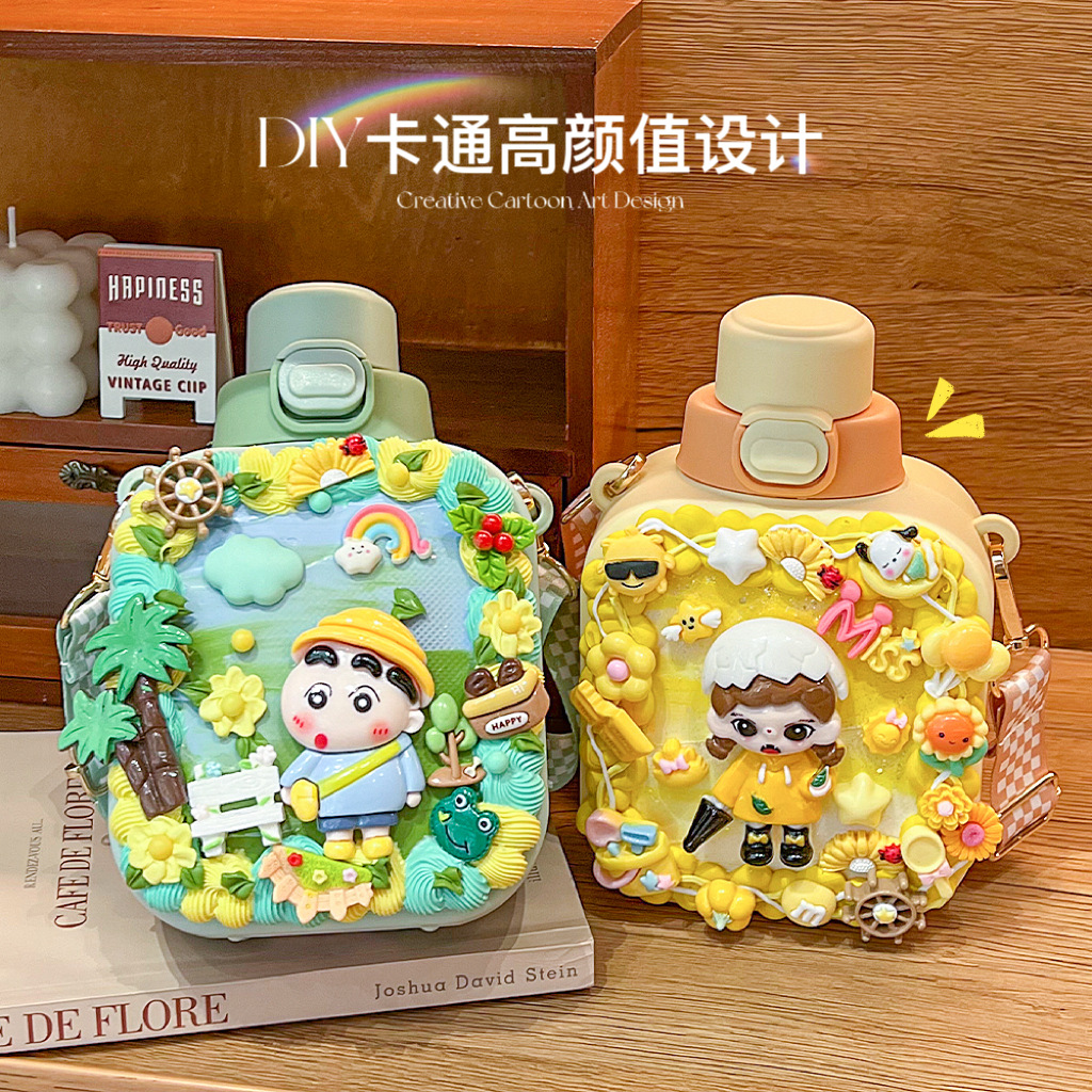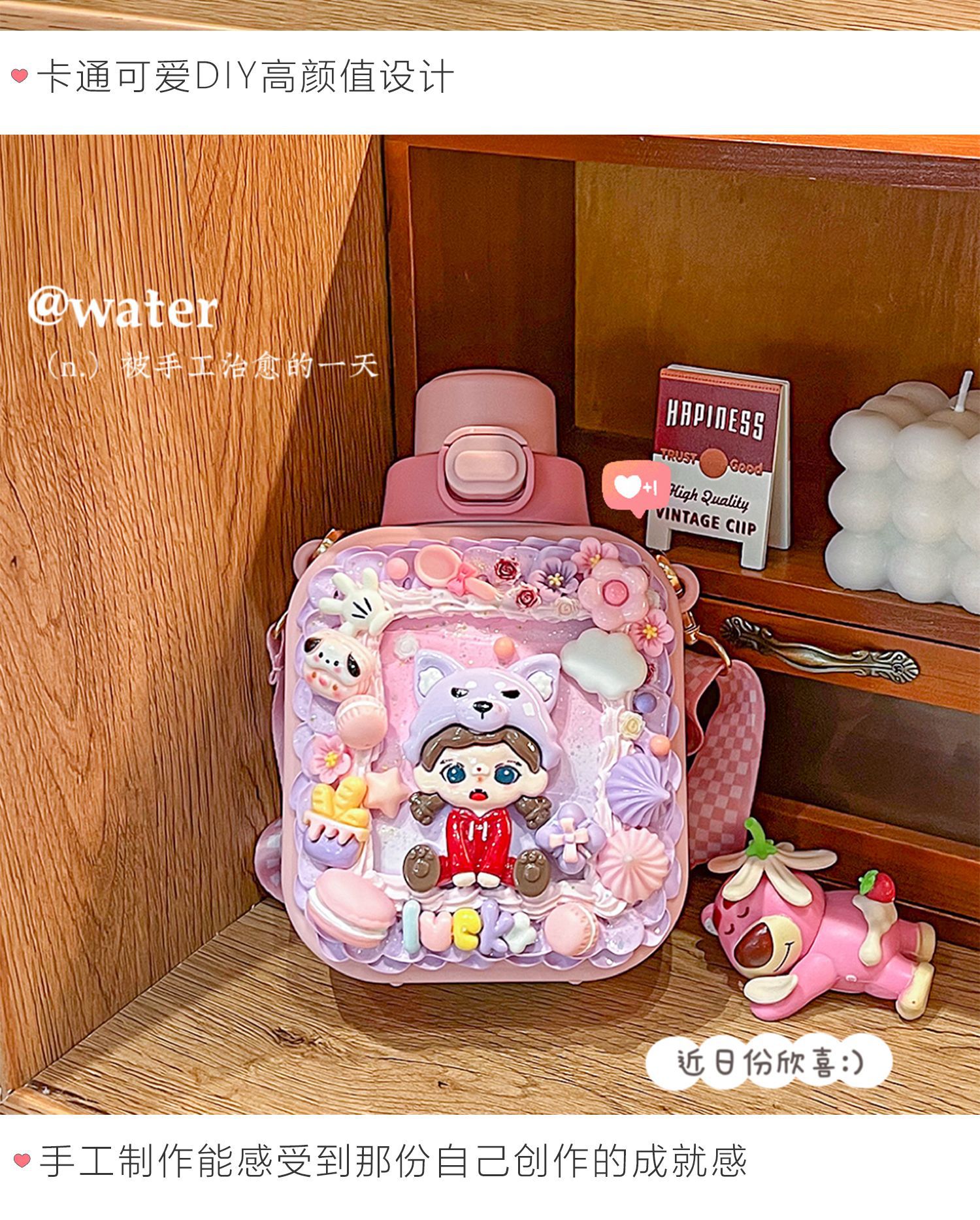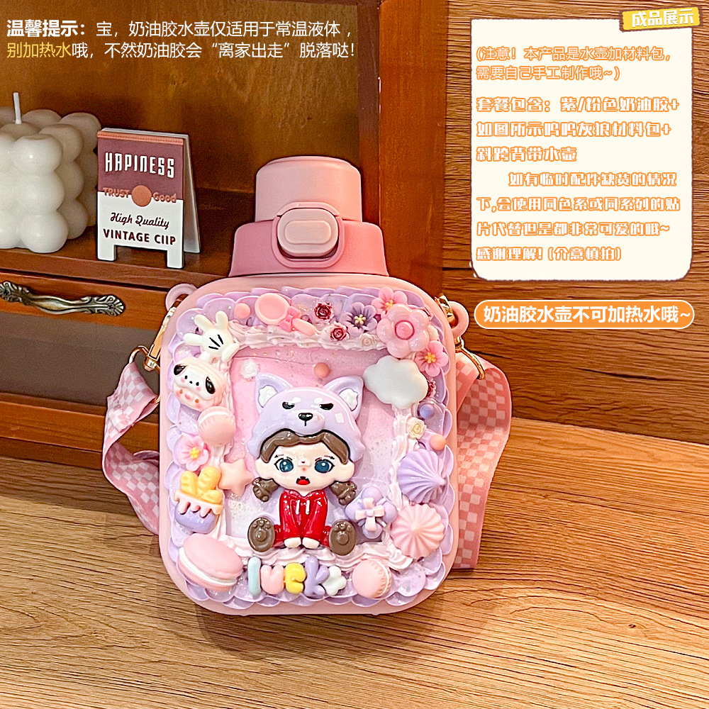 儿童奶油胶手工材料diy大肚水杯大容量斜挎背带网红女生吸管水壶