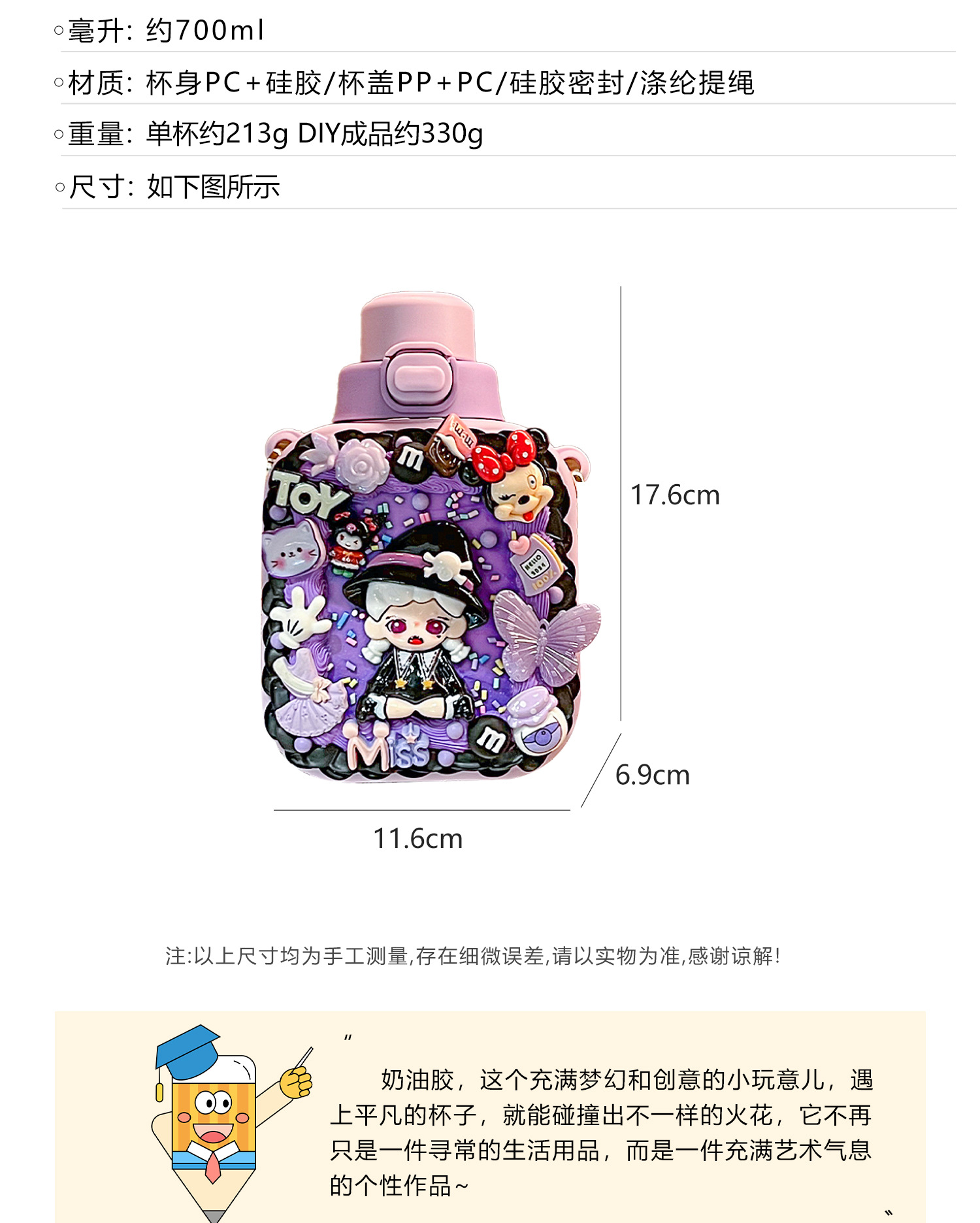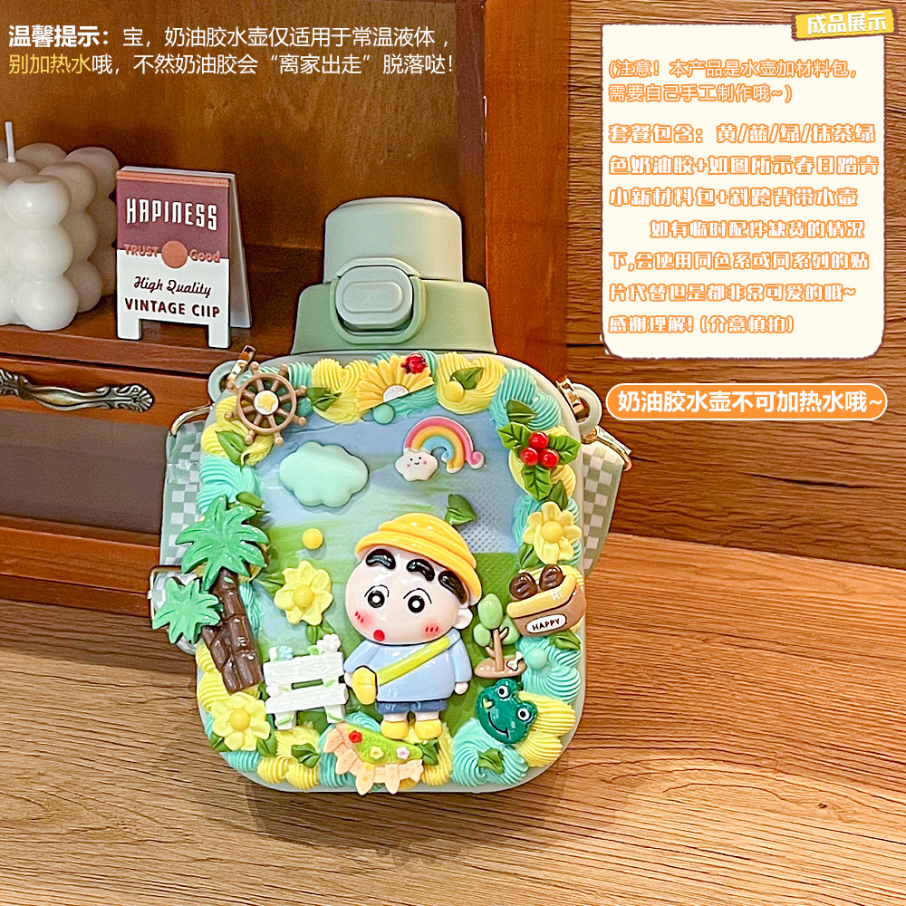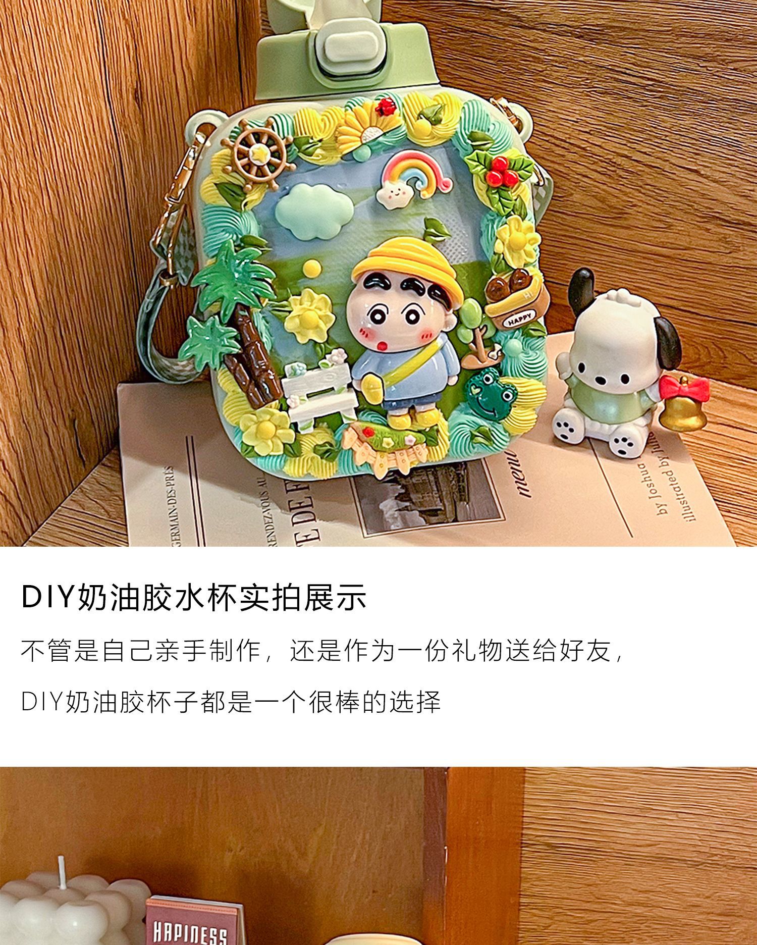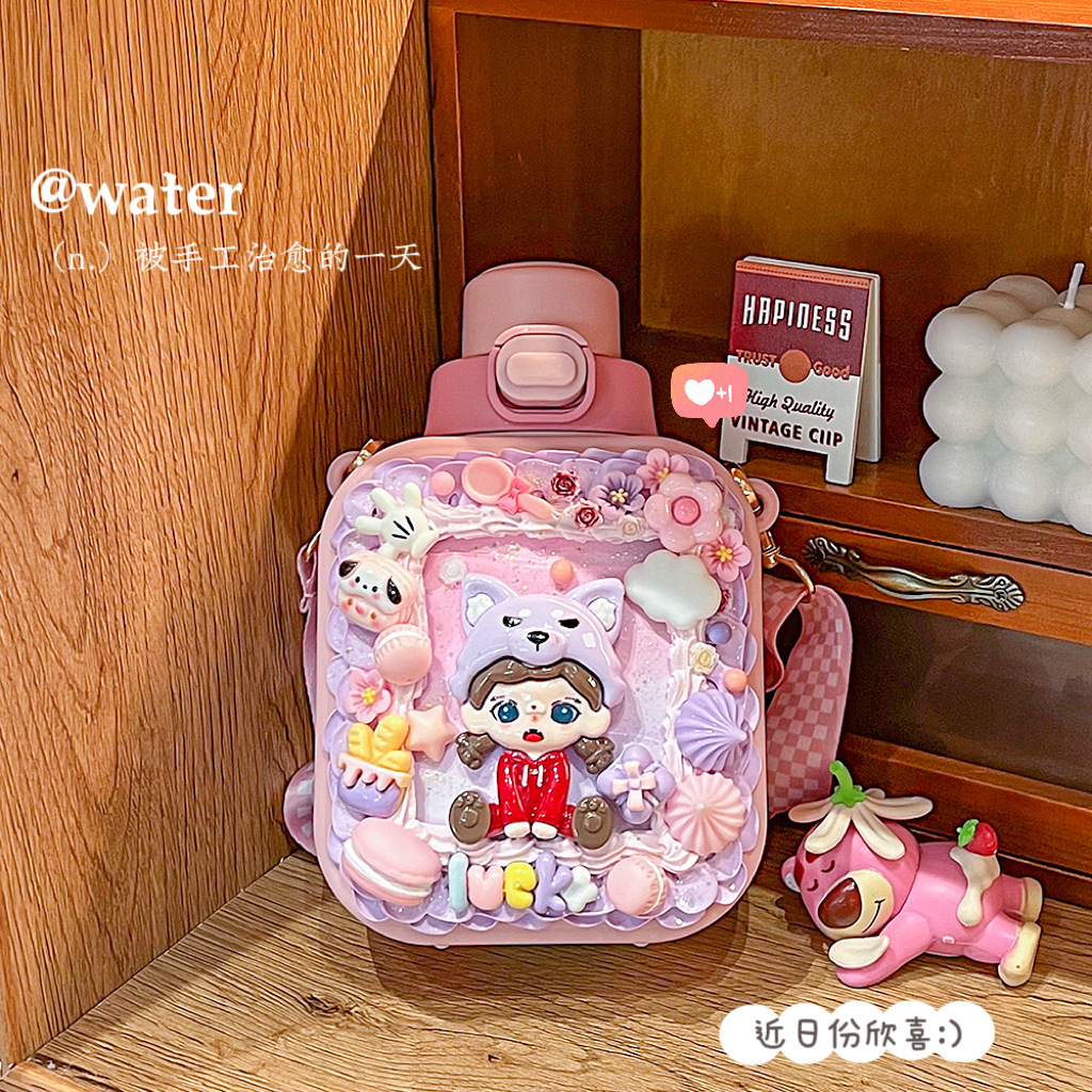 儿童奶油胶手工材料diy大肚水杯大容量斜挎背带网红女生吸管水壶