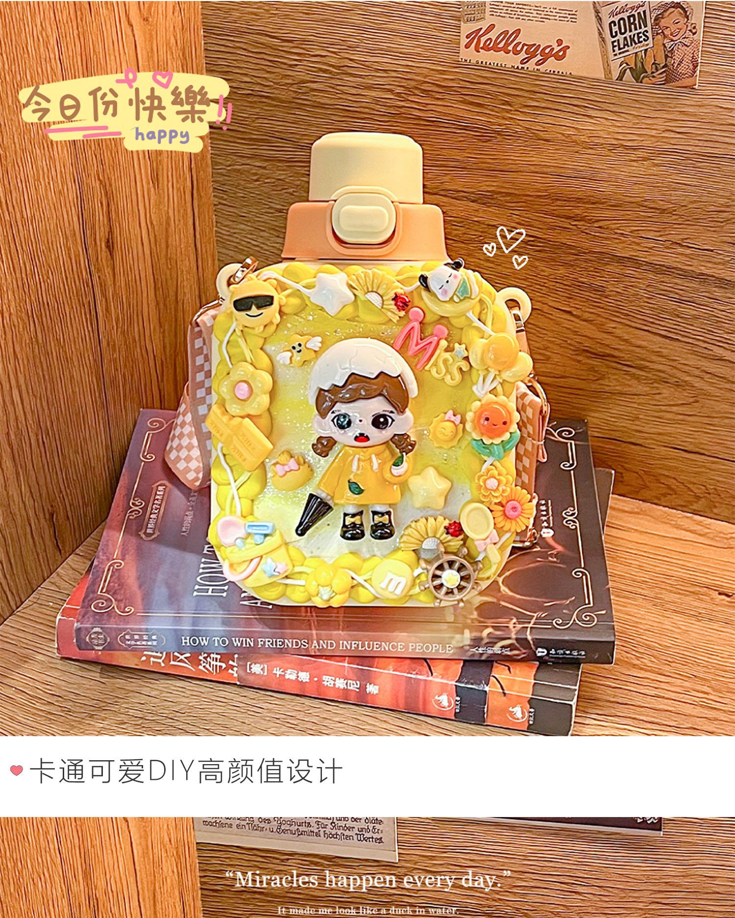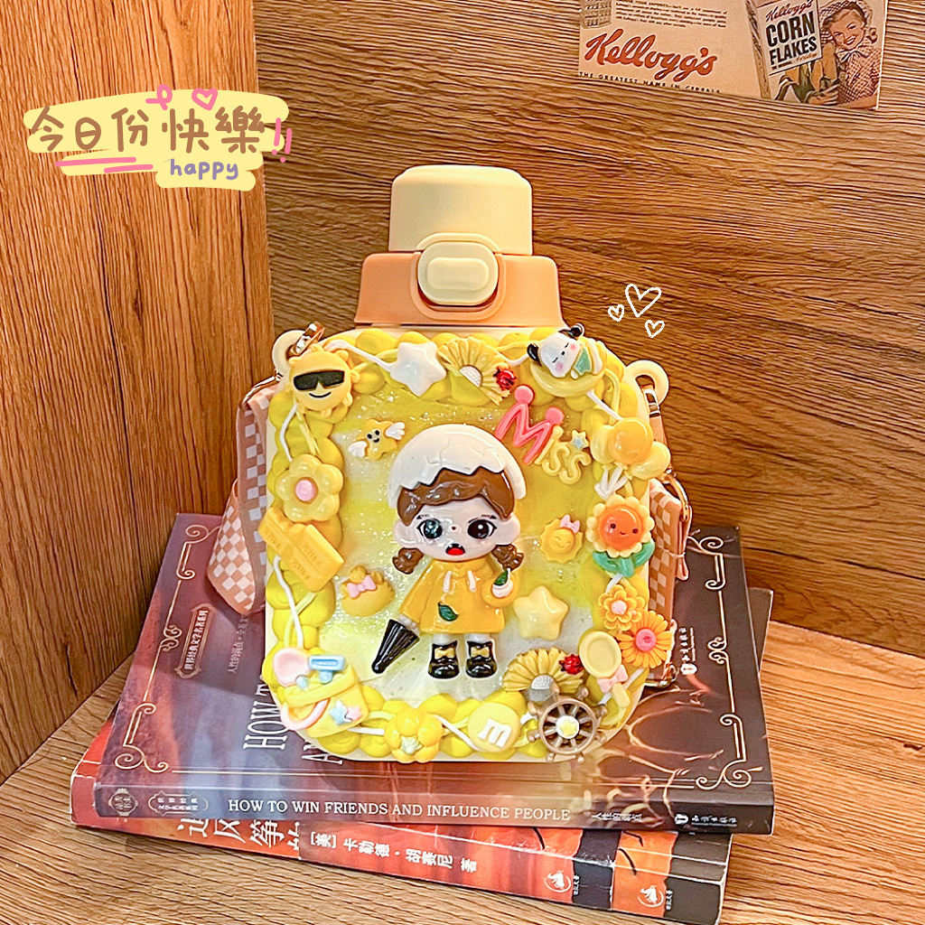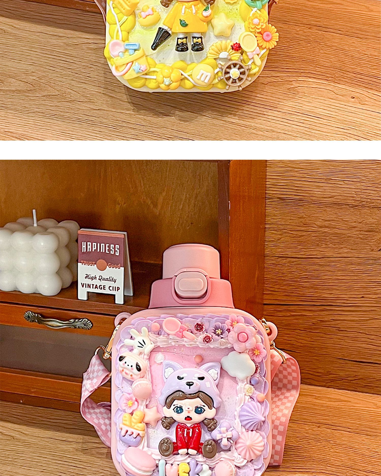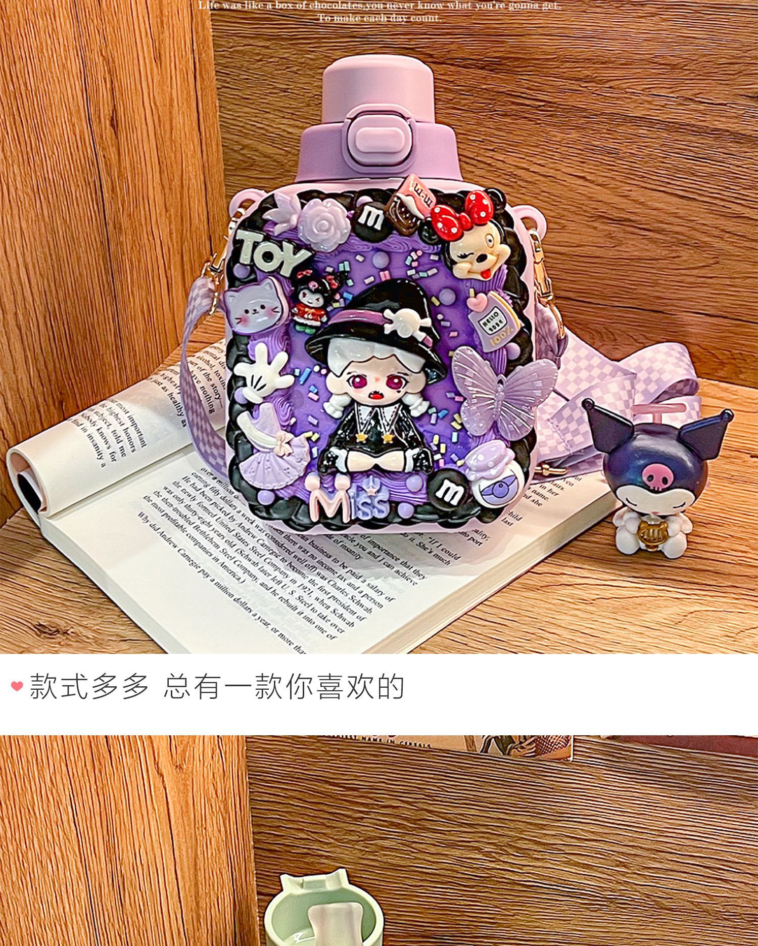 儿童奶油胶手工材料diy大肚水杯大容量斜挎背带网红女生吸管水壶