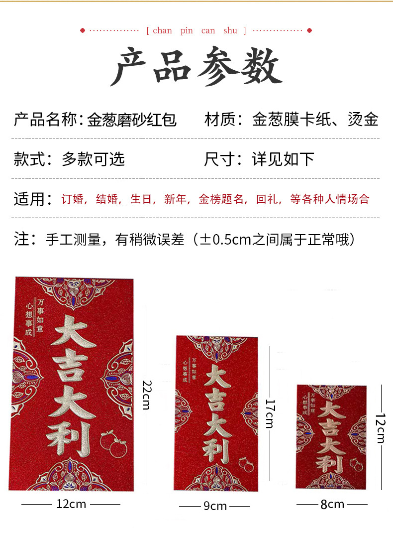 永吉红包2026新款大吉大利新年结婚硬纸大小号利是封通用批发压岁