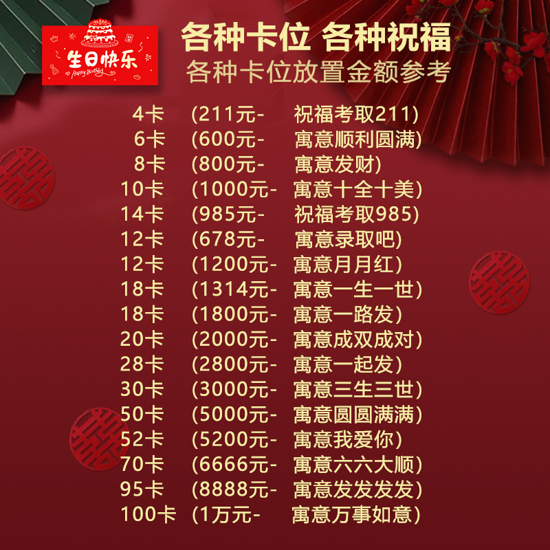 | 52 card positions (5200 yuan)(52卡位(放5200元)) | USD $4.12 | 4983 piece available |