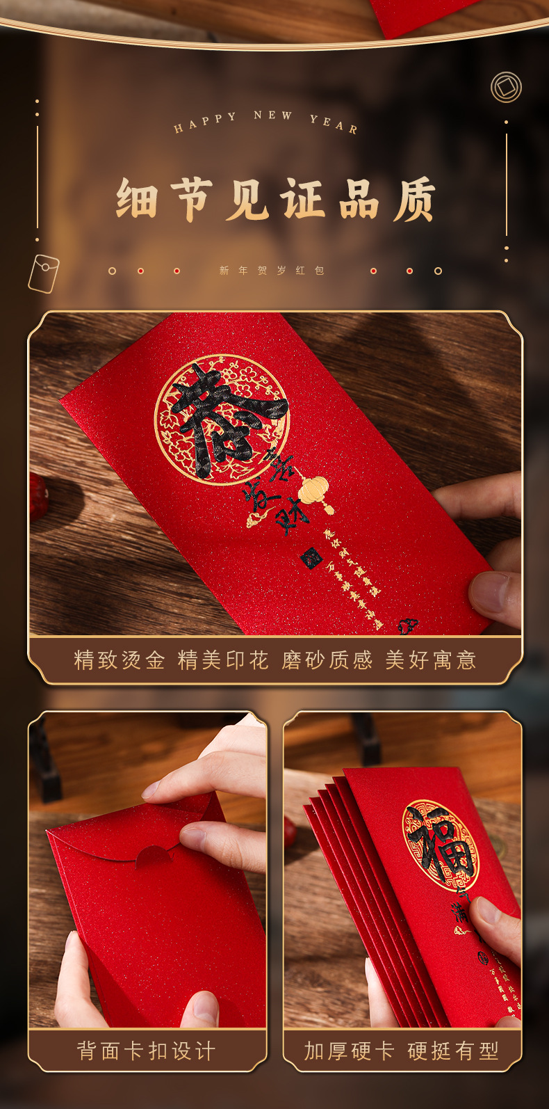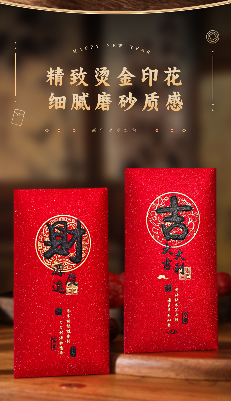 新款磨砂新年红包福气满满中式新春过年送祝福中号利是封红包袋