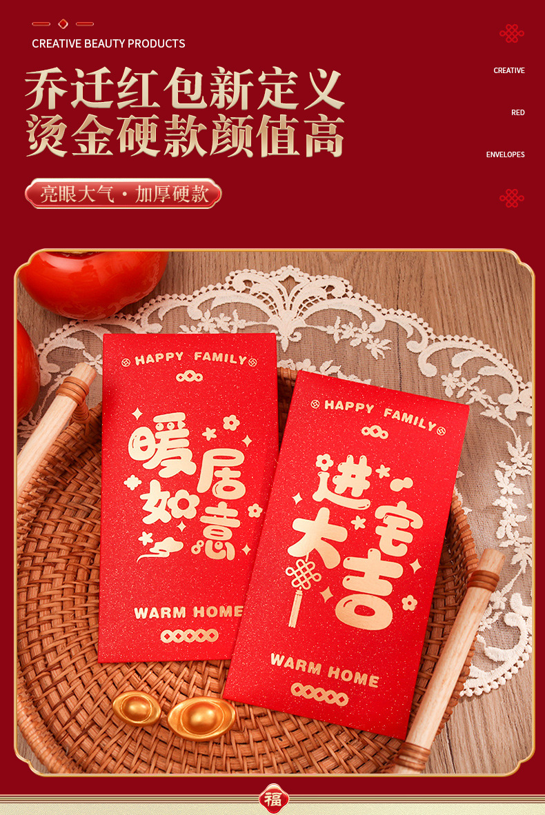 乔迁之喜红包进宅大吉暖居如意喜迎搬家新居五福临门个性化利是封