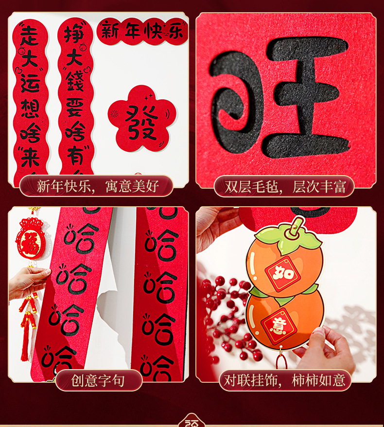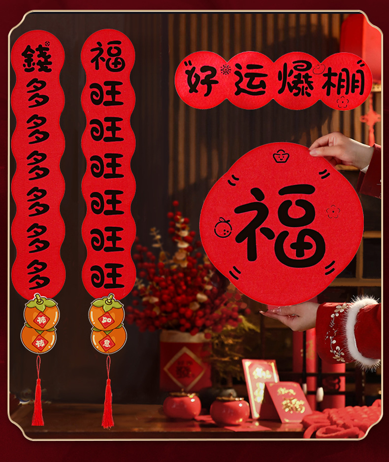 好运爆棚对联毛毡2026马年家用新年入宅磁吸春联搬家立体大门门贴