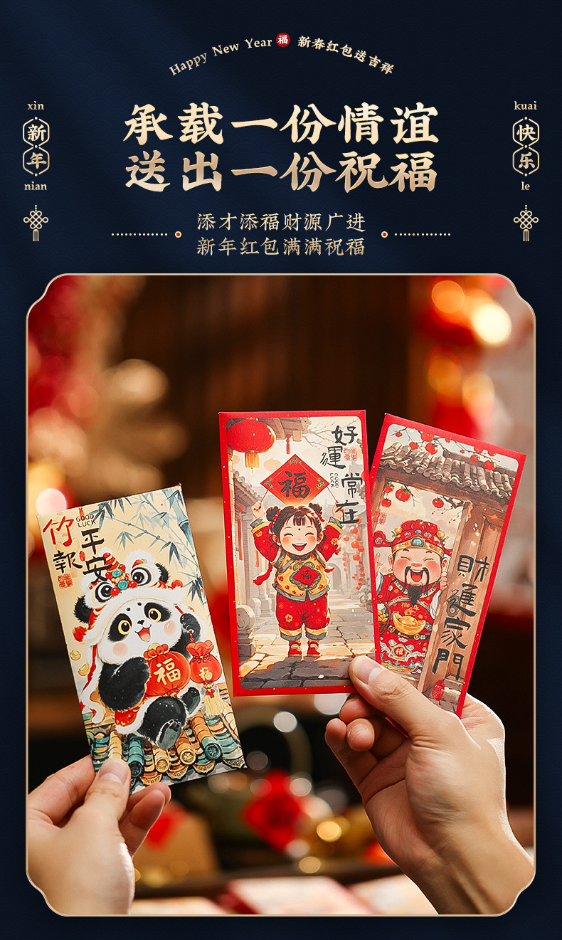 2026马年红包批货春节卡通福娃过年利是封新年国潮熊猫儿童红包袋