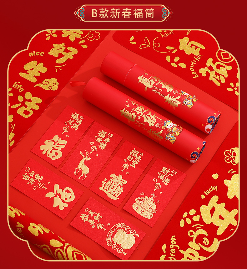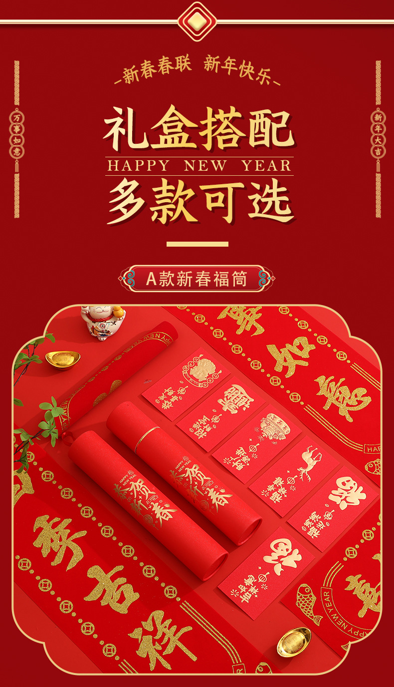 2025蛇年新春广告春联春节大门装饰品福字红包门贴大礼包套装