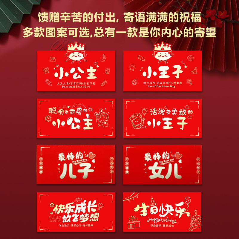 小公主小王子红包袋拉伸宝宝利是封儿童周岁快乐成长折叠生日红包