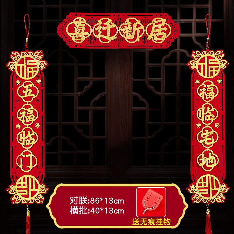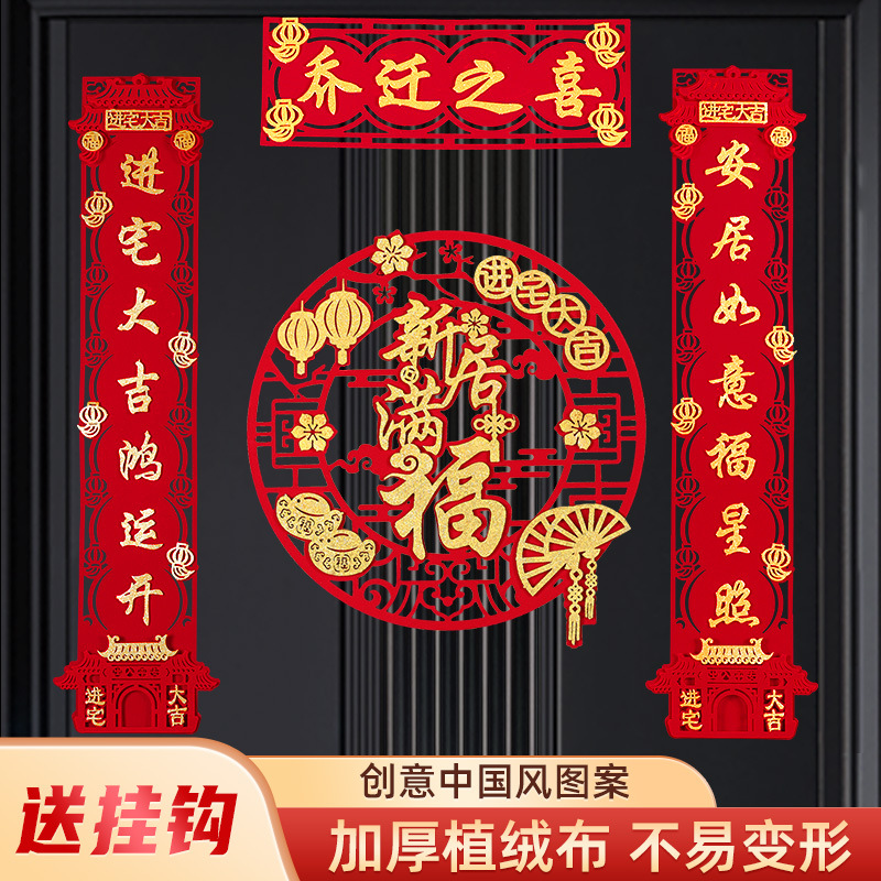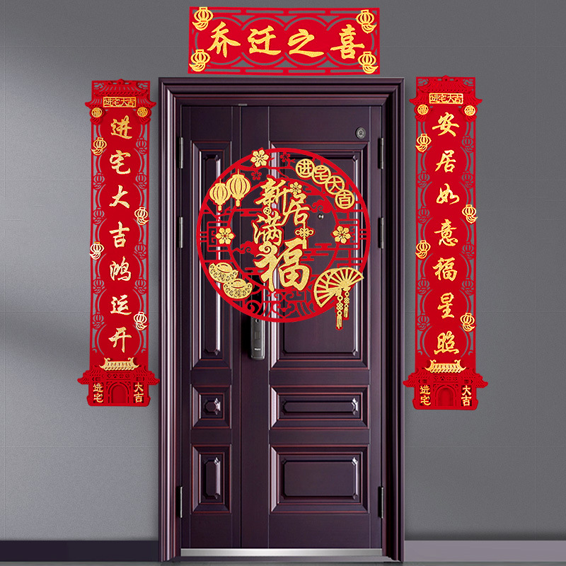 乔迁之喜装饰新居大门对联入宅入户搬家福字门贴新房布置乔迁对联