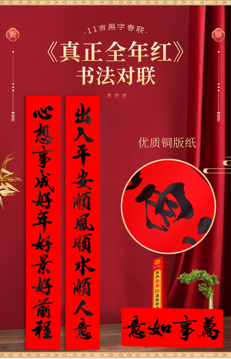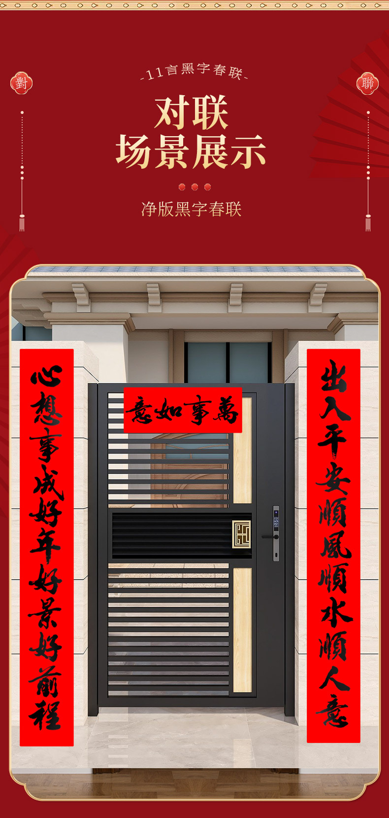 2026年年好净版十一言书法黑字耐晒铜版对联厂房自建房大门批发