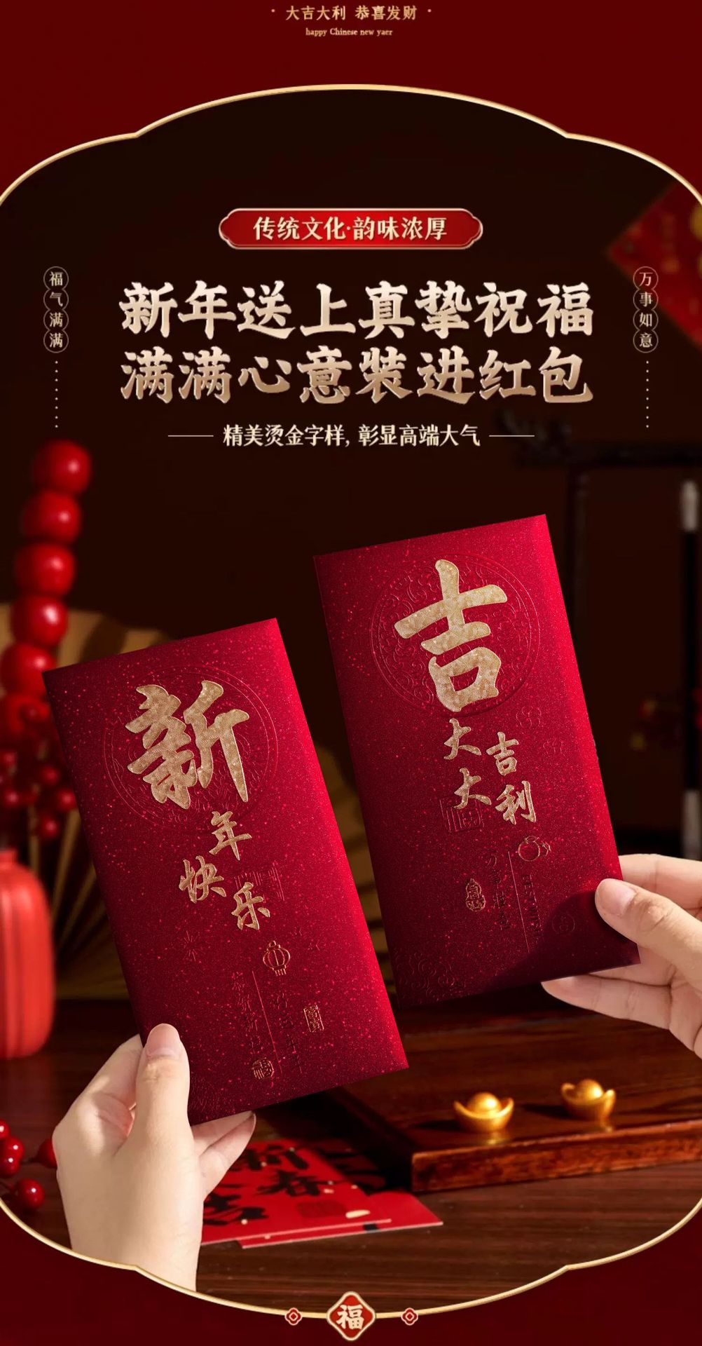 25蛇新年轻奢红包个性创意磨砂烫金春节红包袋高档加厚福字利是封