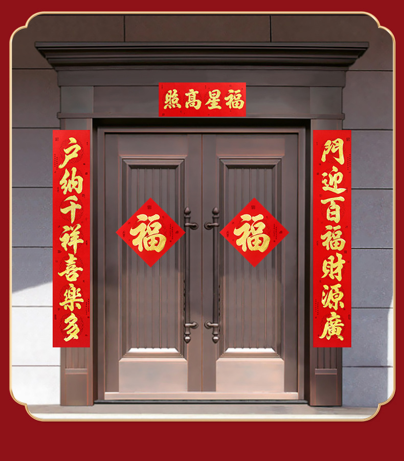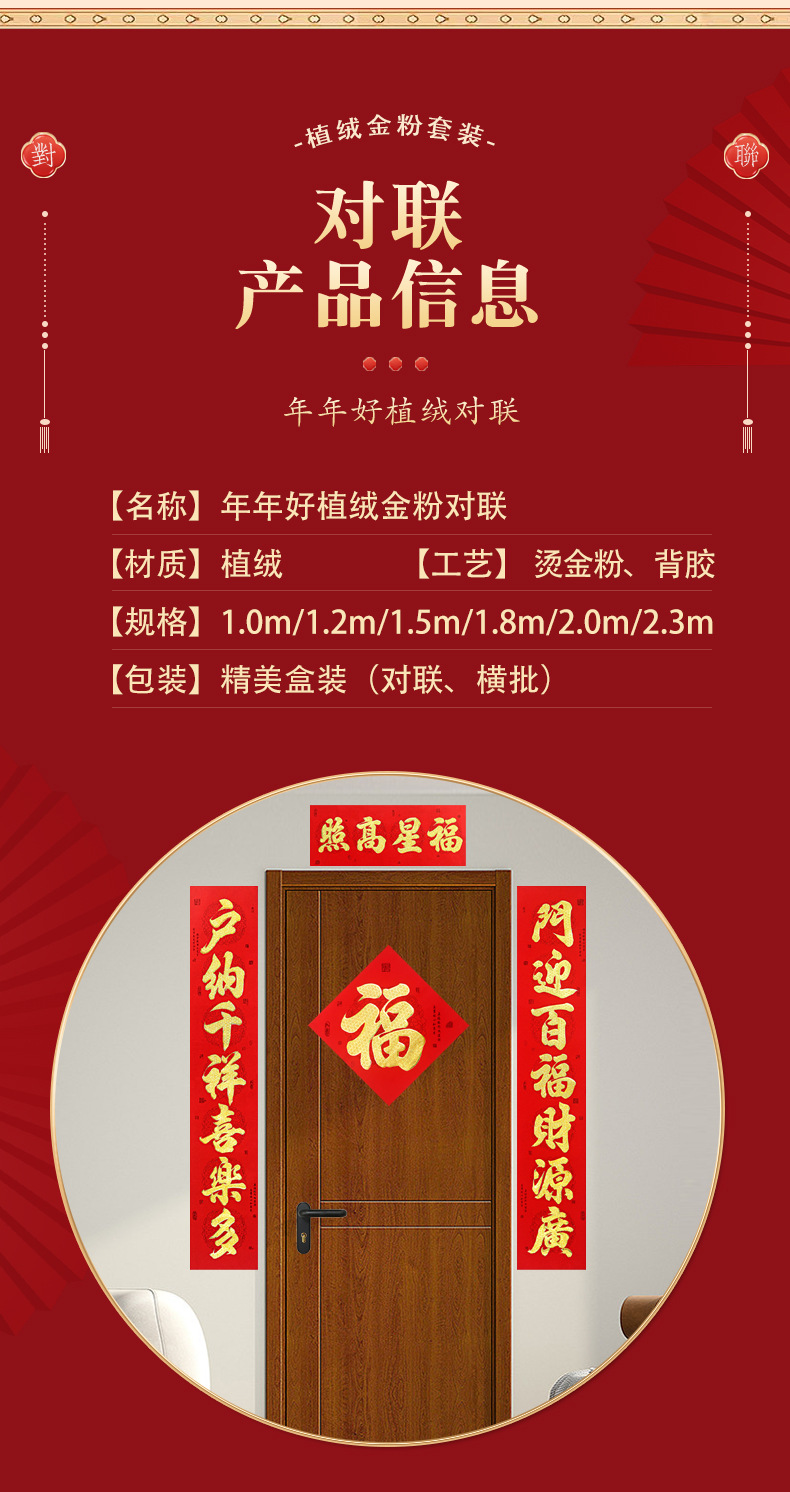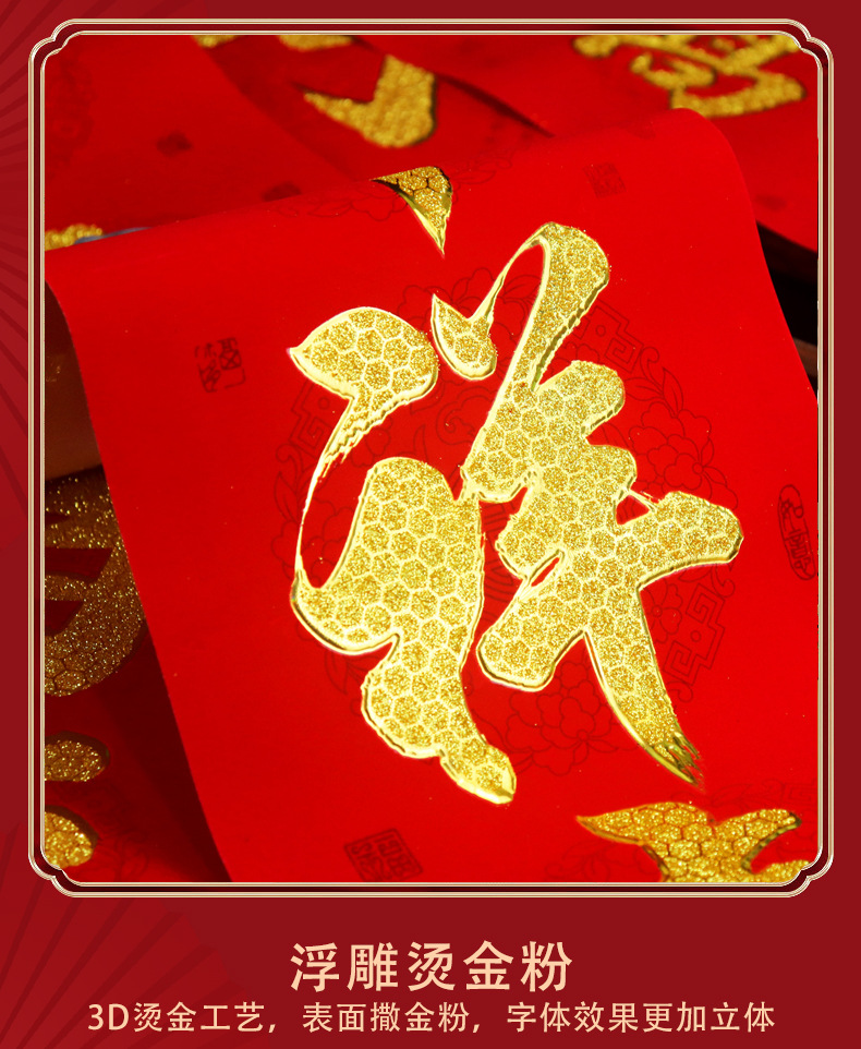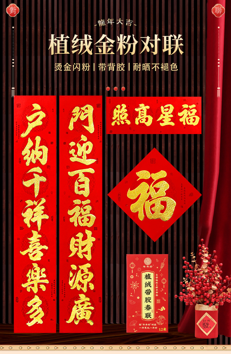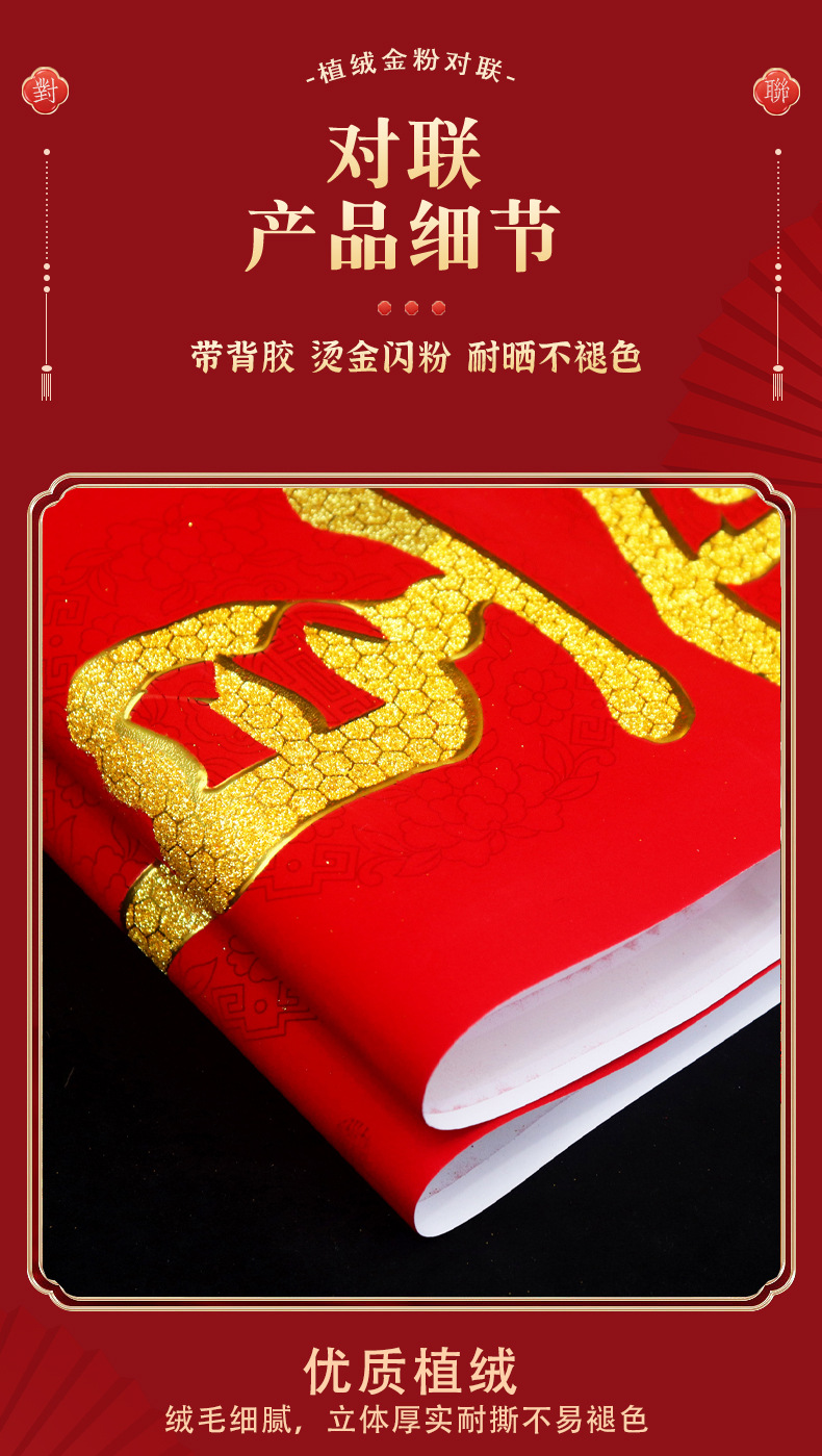 2026年带背胶对联新款植绒烫金粉对联自粘春联小区自建房大门装饰