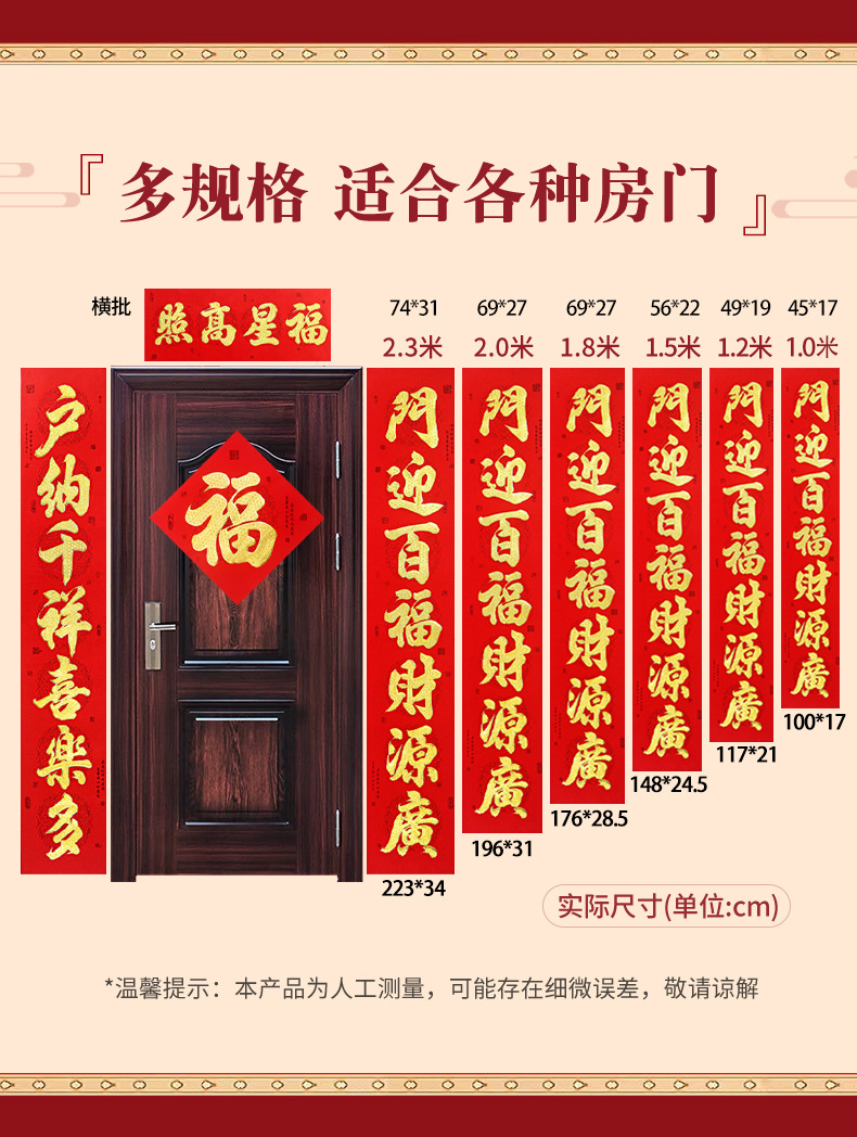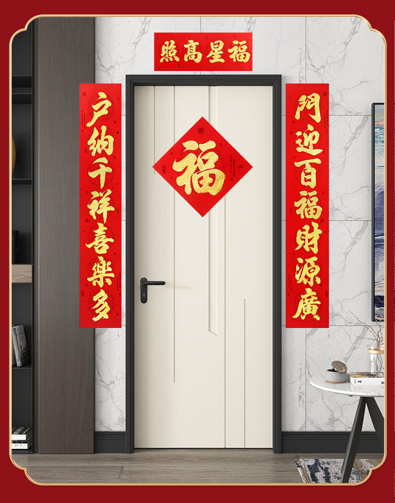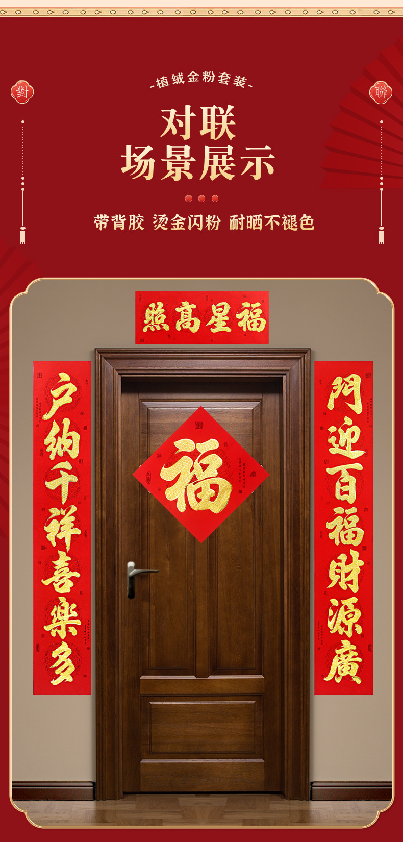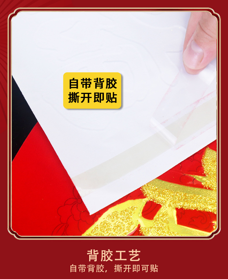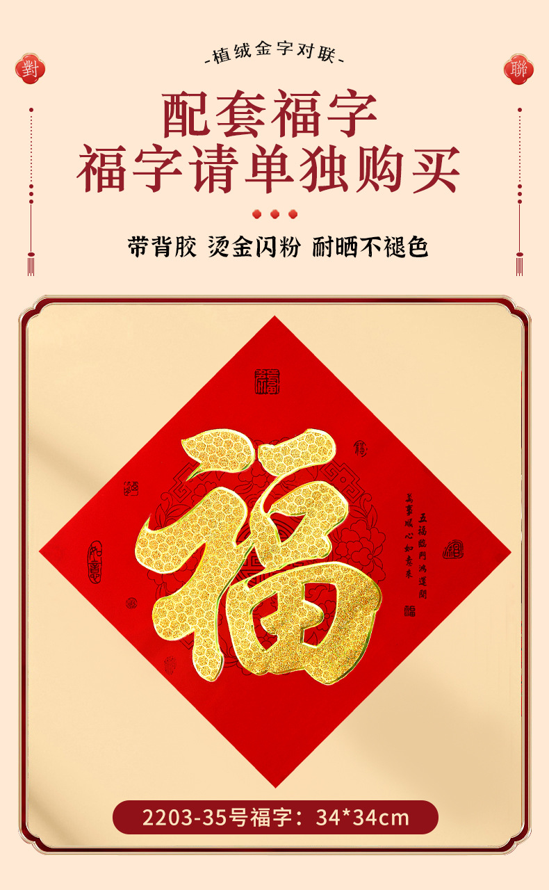 2026年带背胶对联新款植绒烫金粉对联自粘春联小区自建房大门装饰