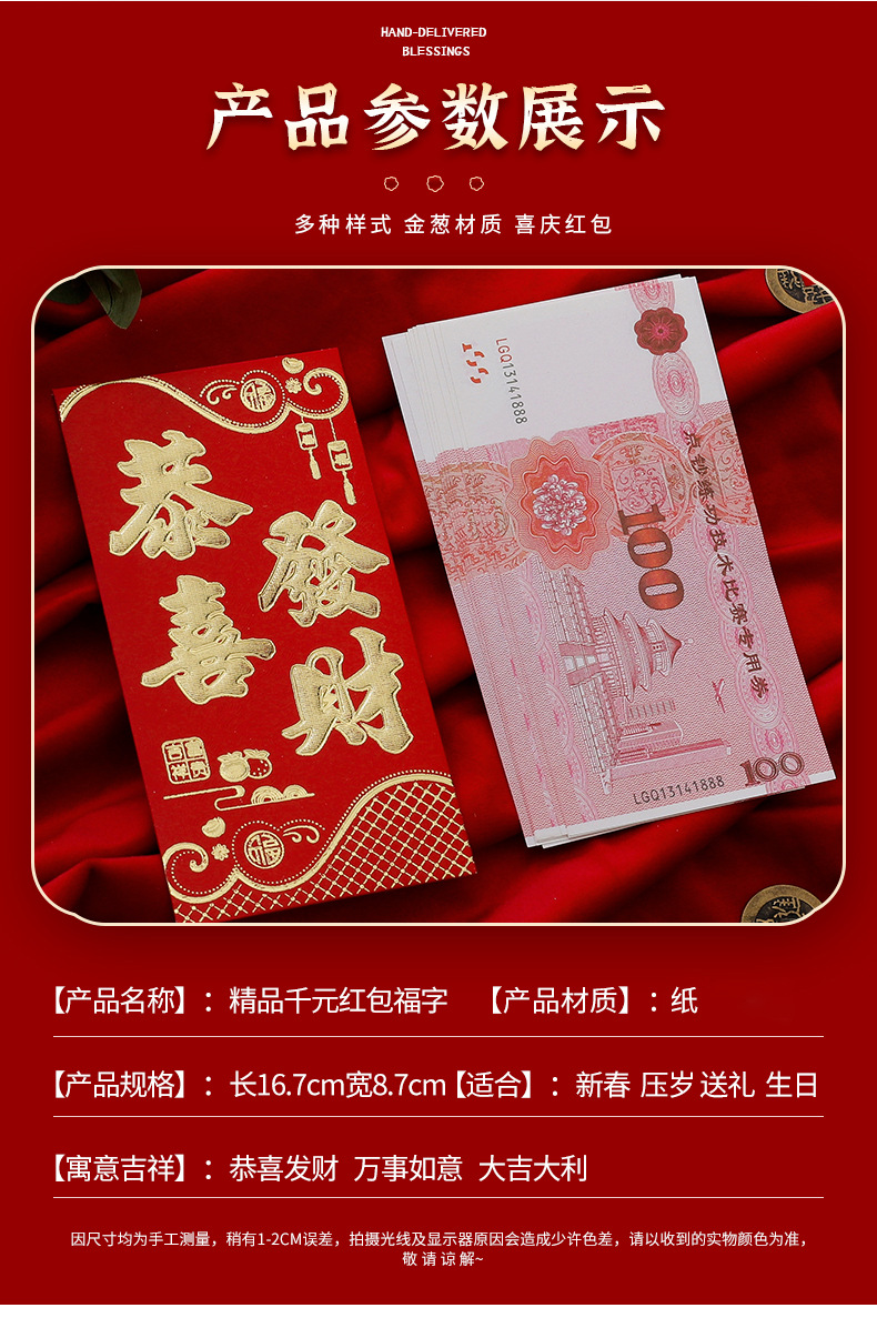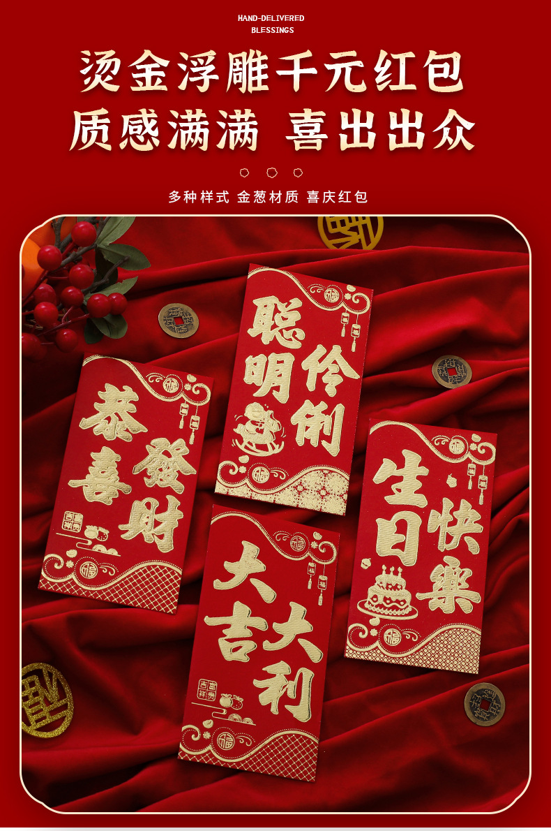 福字春节过年通用红包袋利是封千元百元大号高档烫金彩印批货定制