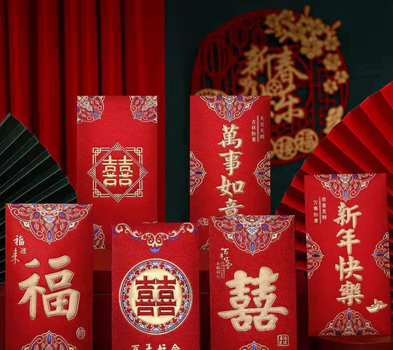 永吉龙年烫金磨砂金聪硬纸红包袋结婚新年快乐千元喜字创意利是封
