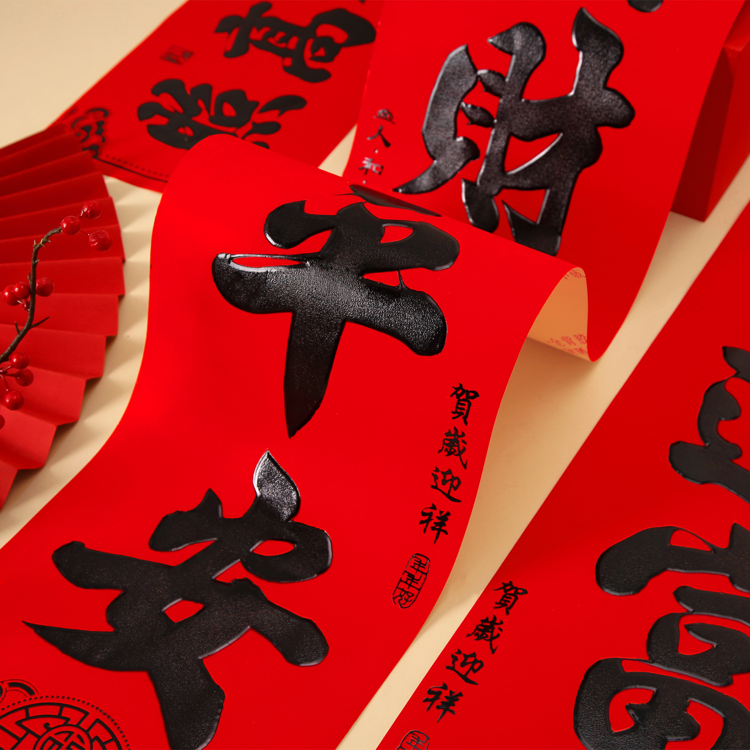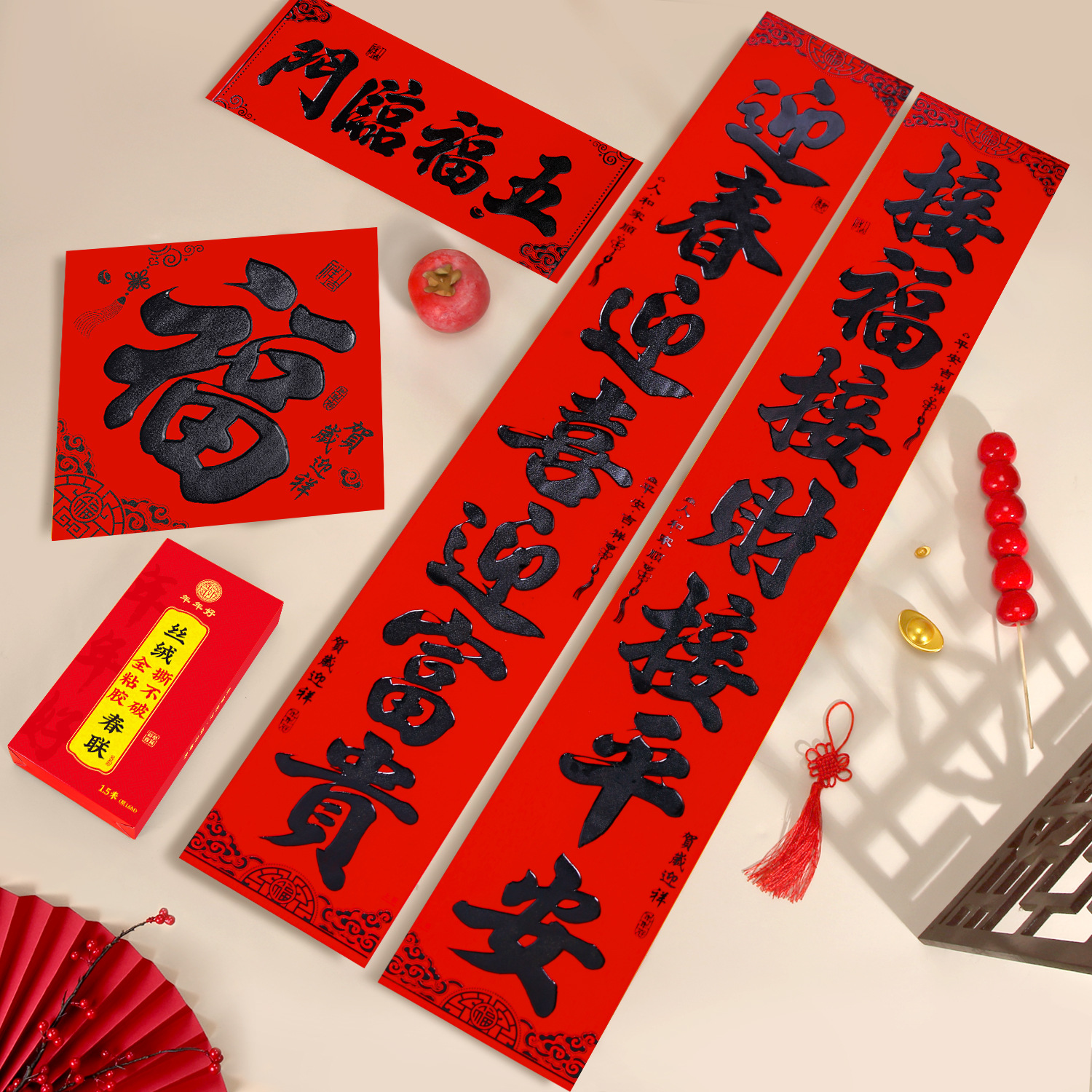 2026马年好丝绒全背胶对联烫黑金耐晒撕不破名家批发摆摊书法对联
