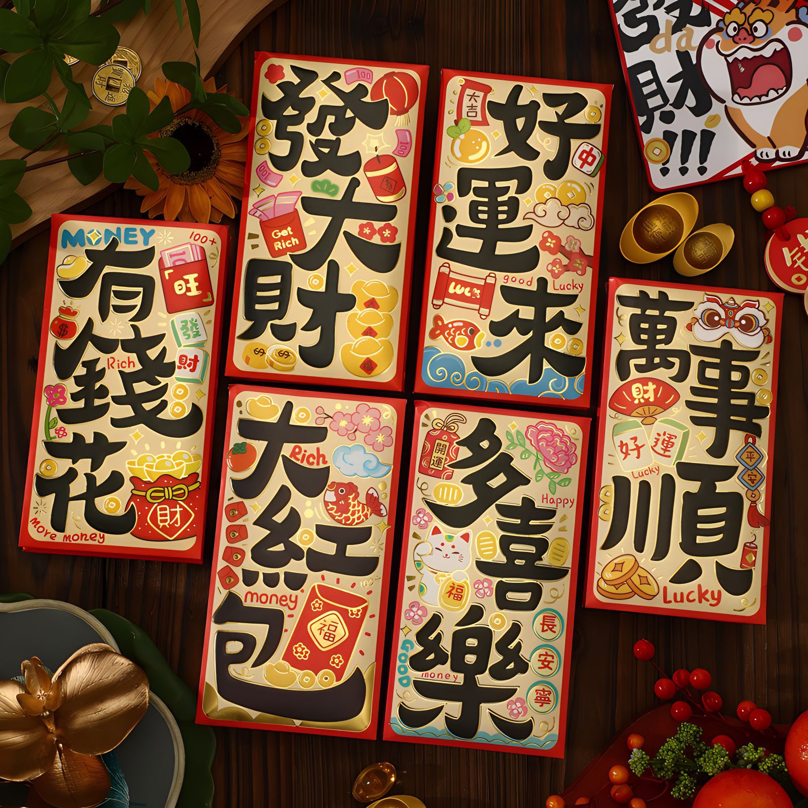 2026马年大红包烫金新年过年可爱卡通利是封回礼方形红包批发广告
