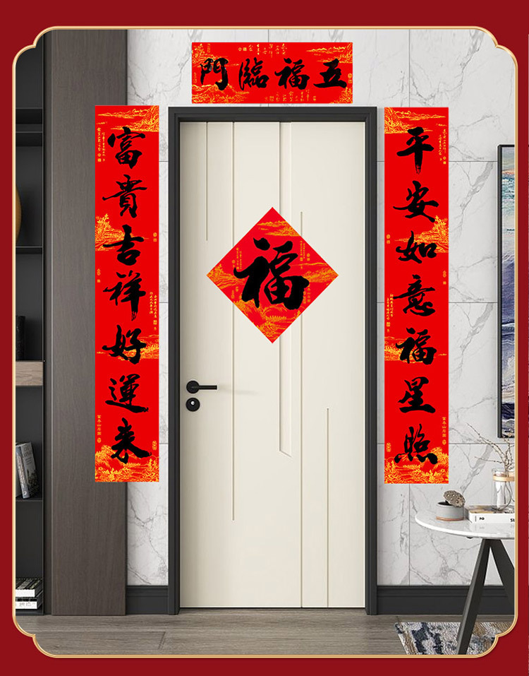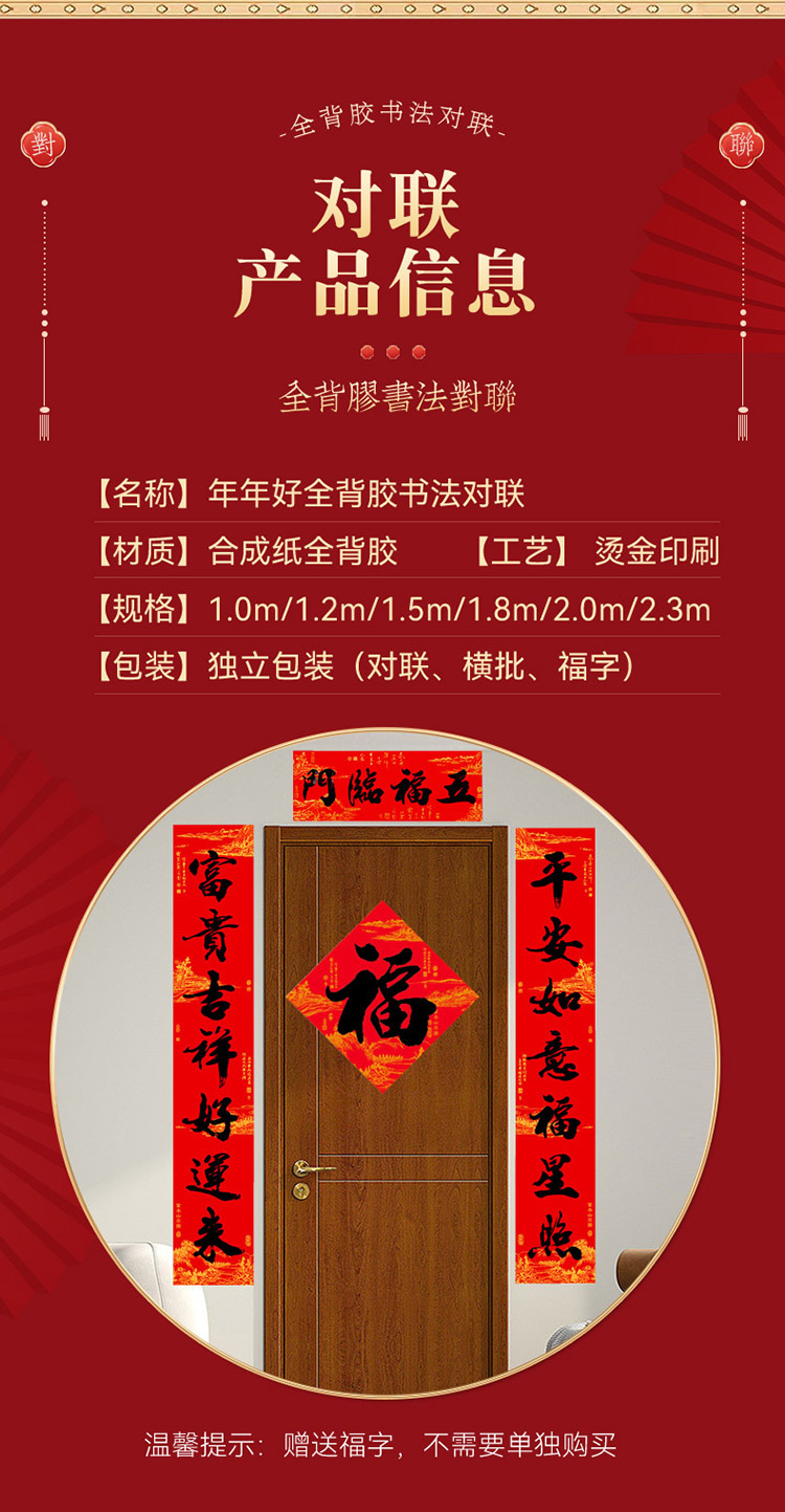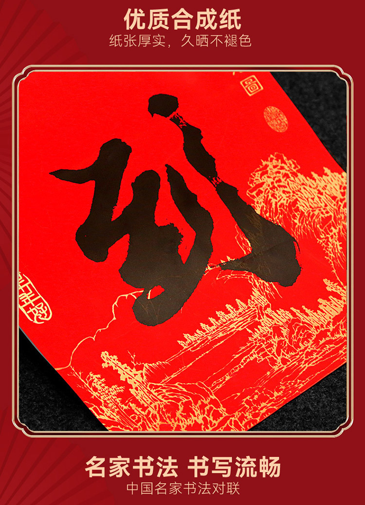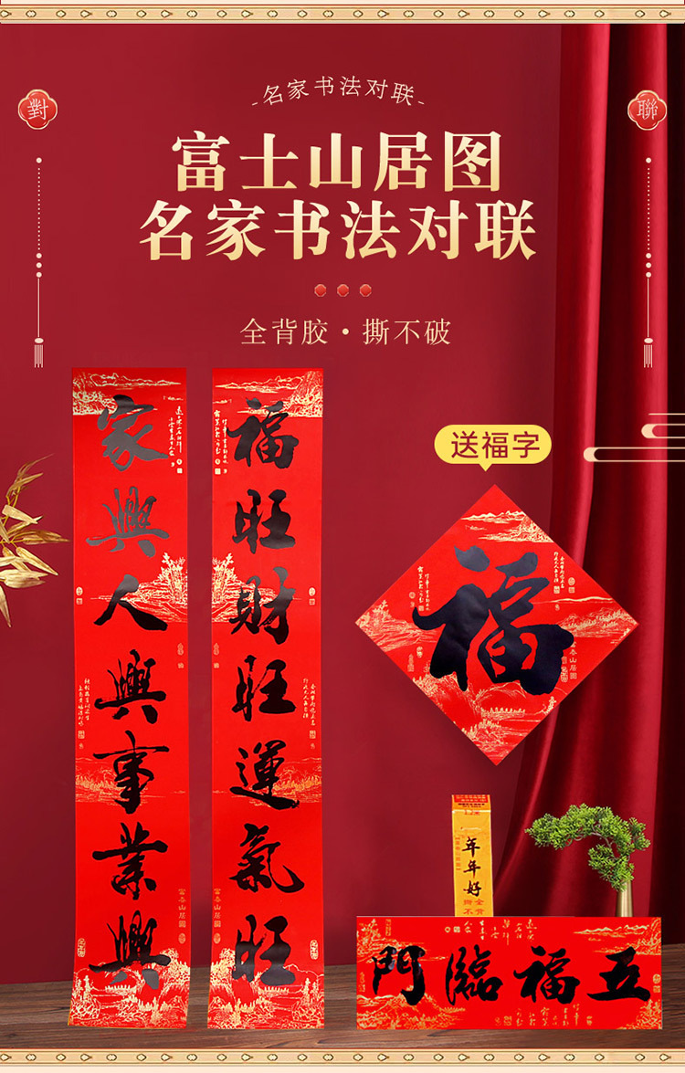 年年好背胶黑字书法对联防水耐晒撕不破自粘春联商品自建房春联