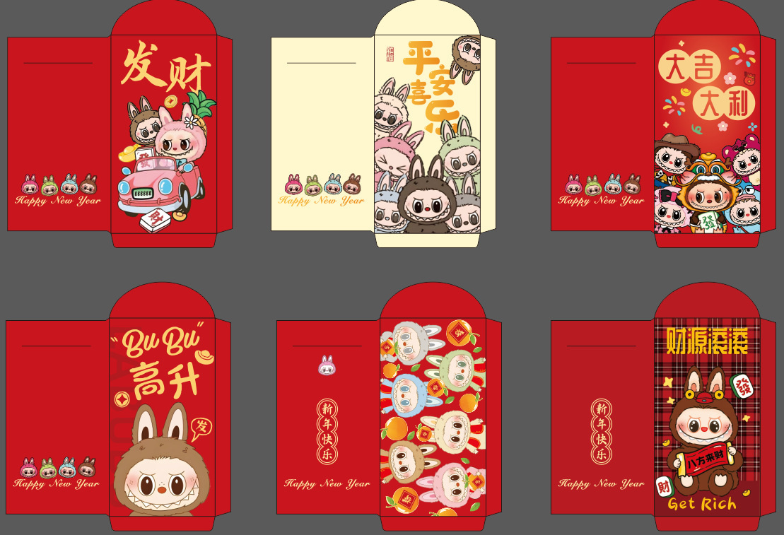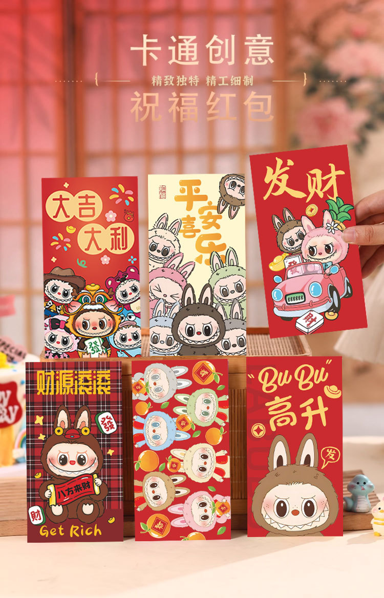 新款拉布布卡通蛇年红包袋2025Labubu利是封春节过年趣味多图