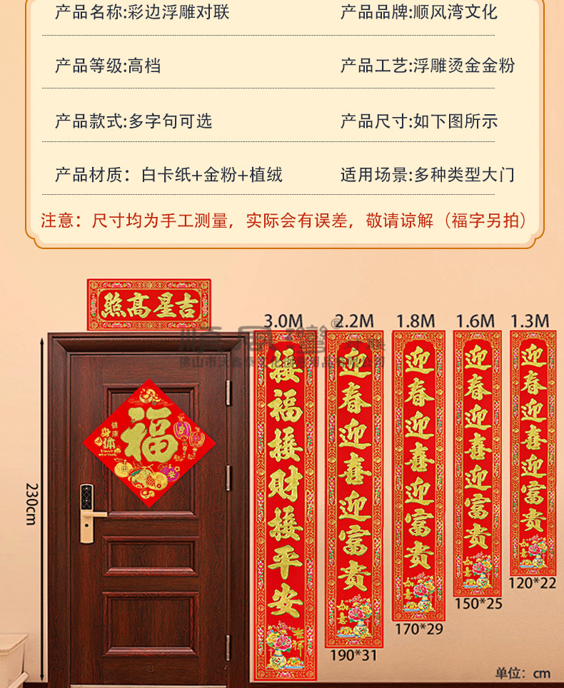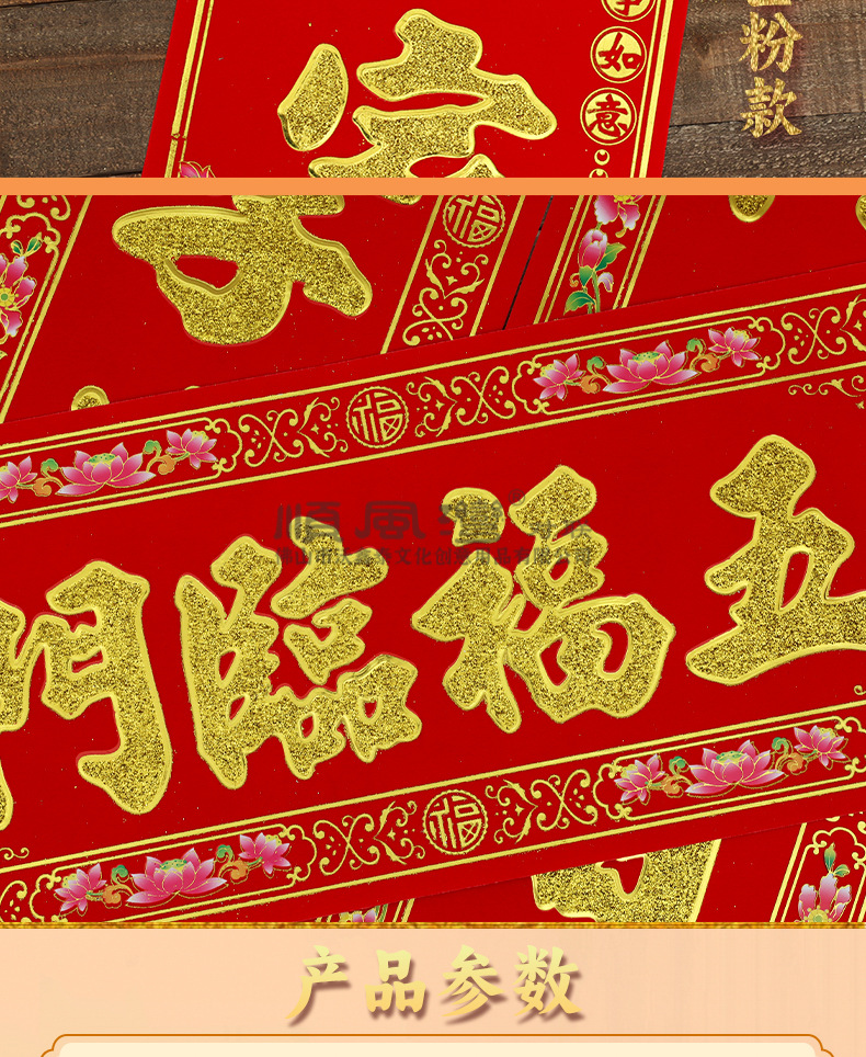 顺风湾2026马年春联彩边植绒金粉烫金对联年货过年装饰对联彩金