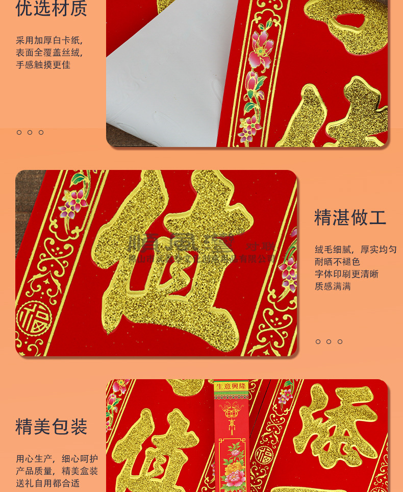 | welcome to the spring, welcome the wealth, receive the fortune, receive the wealth, and receive the peace (jixing)(迎春迎喜迎富贵,接福接财接平安(吉星)) | USD $0.59 | 4932 box available |