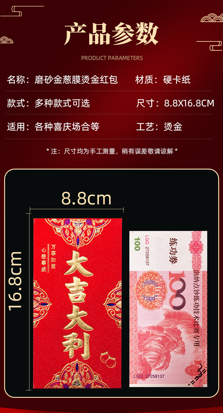 | 8 * 12cm 100 yuan need to be folded in half small size(8*12cm百元需对折小号) | USD $0.04 | 168882 piece available |
