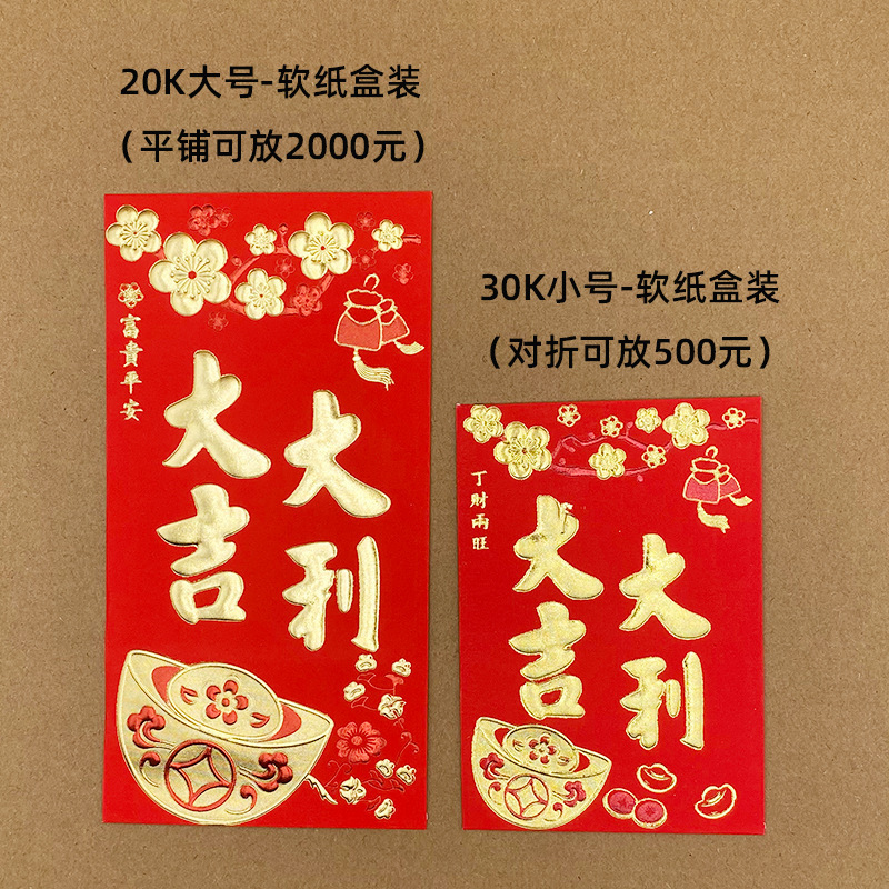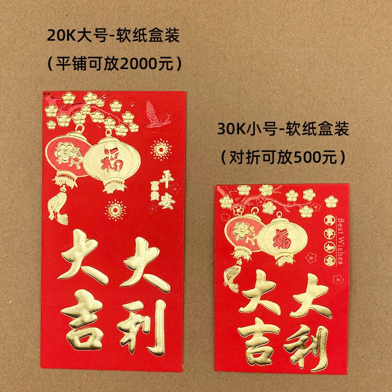 广式港版高档利是封大号中号双色盒装软纸艳红纸烫金红包袋批发