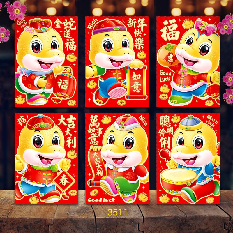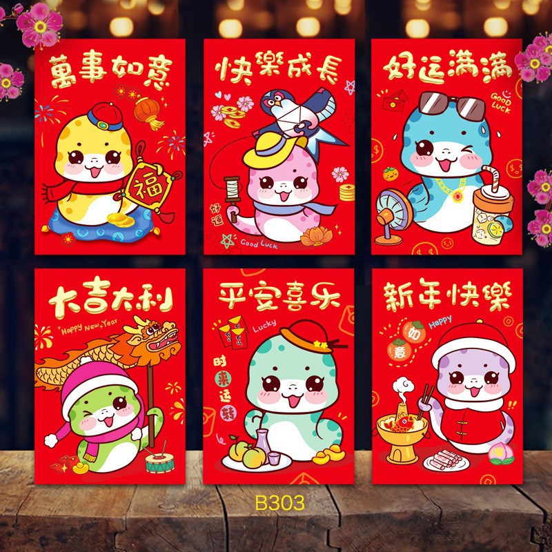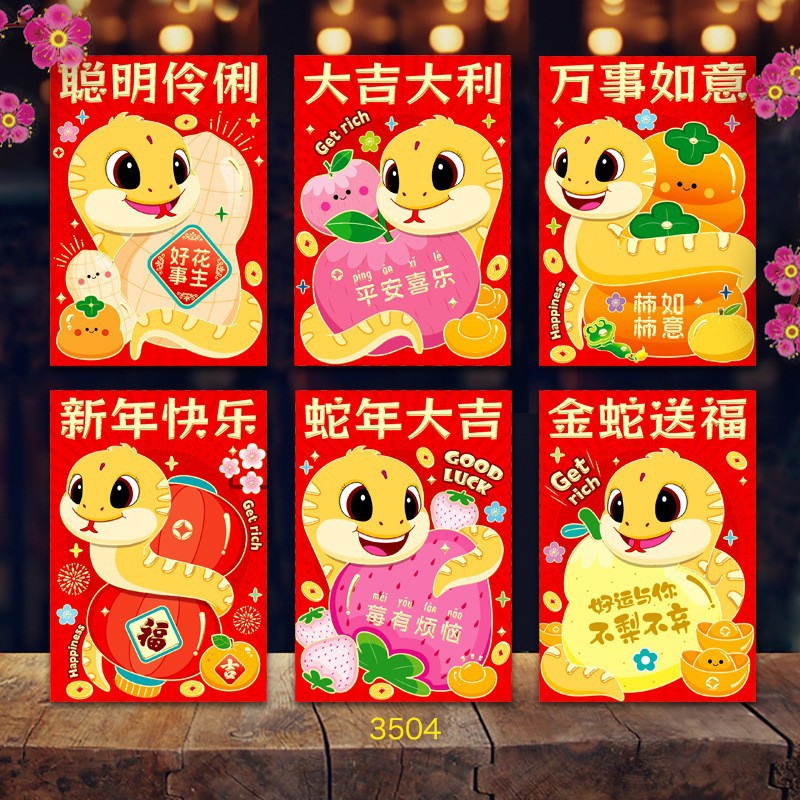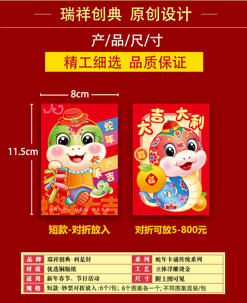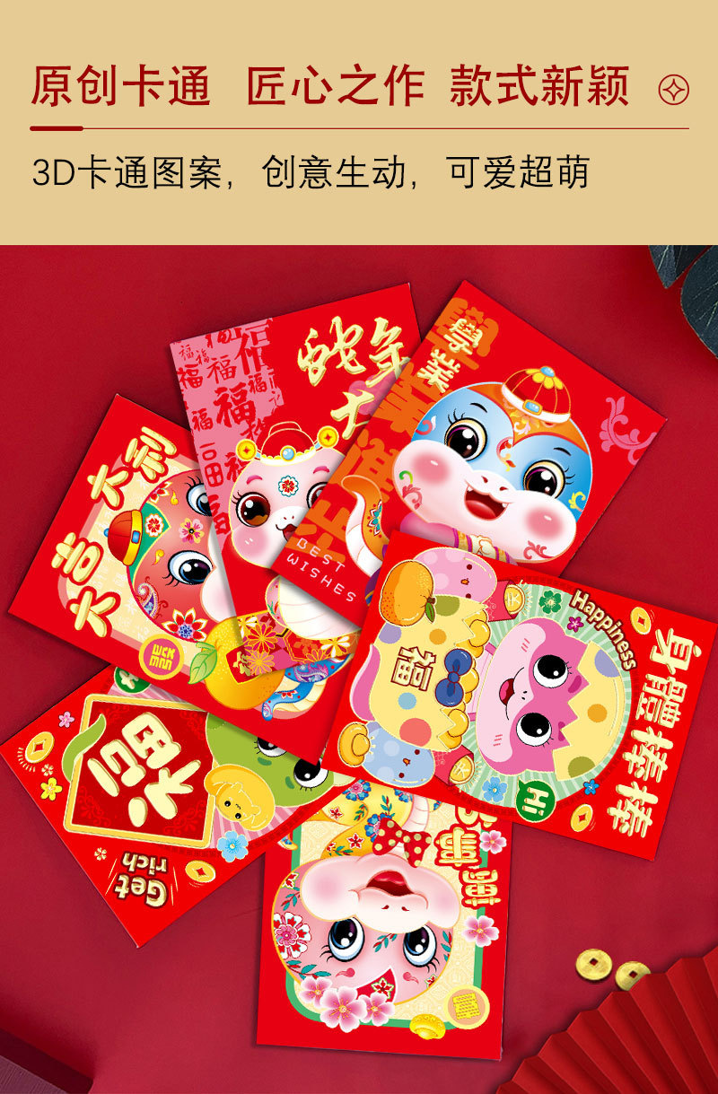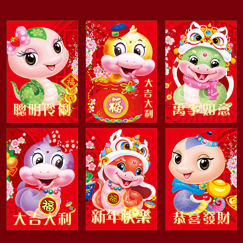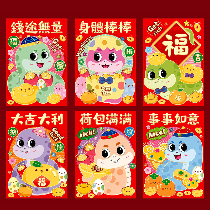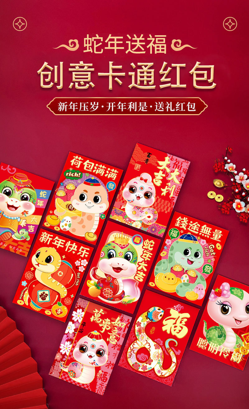 2025年蛇年瑞祥红包卡通红包袋个性创意春节可爱生肖利是封可印