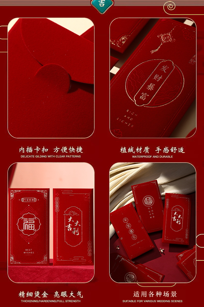 2025高档新年植绒红包大吉大利福字利是封春节用品批发千元压岁包