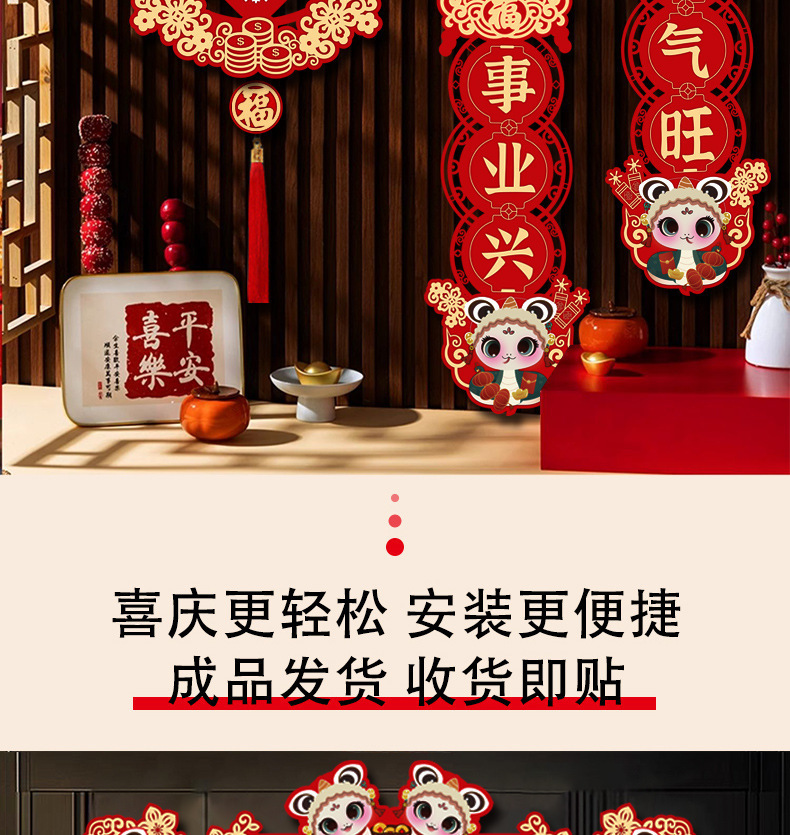 春节对联春联批发家用2025蛇年新款新年植绒过年高档门挂件焕新