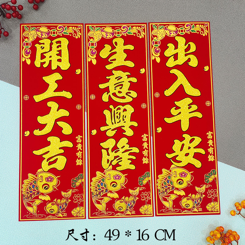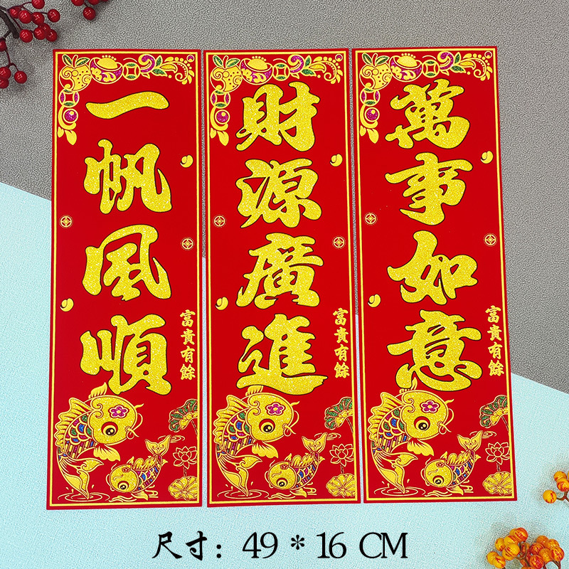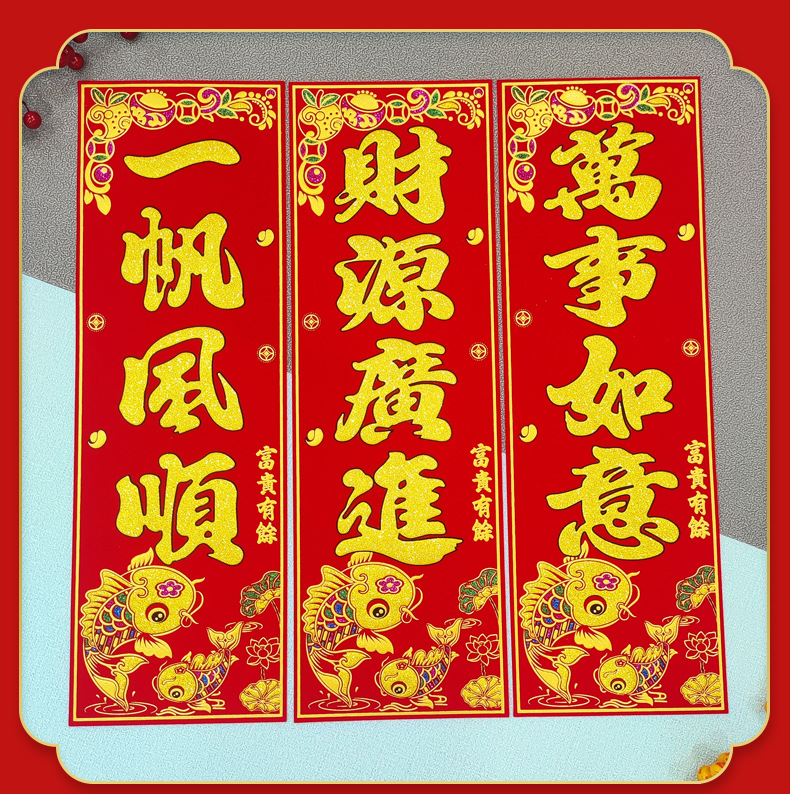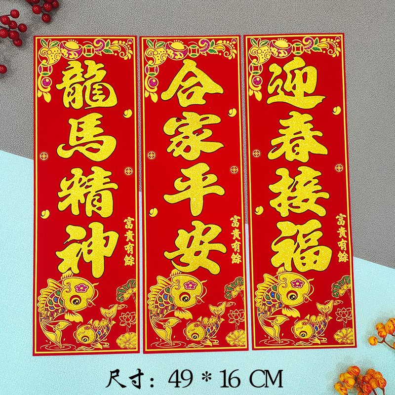 2025新年四字挥春对联绒布小珲春横批抬头见喜门贴春联大门全背胶