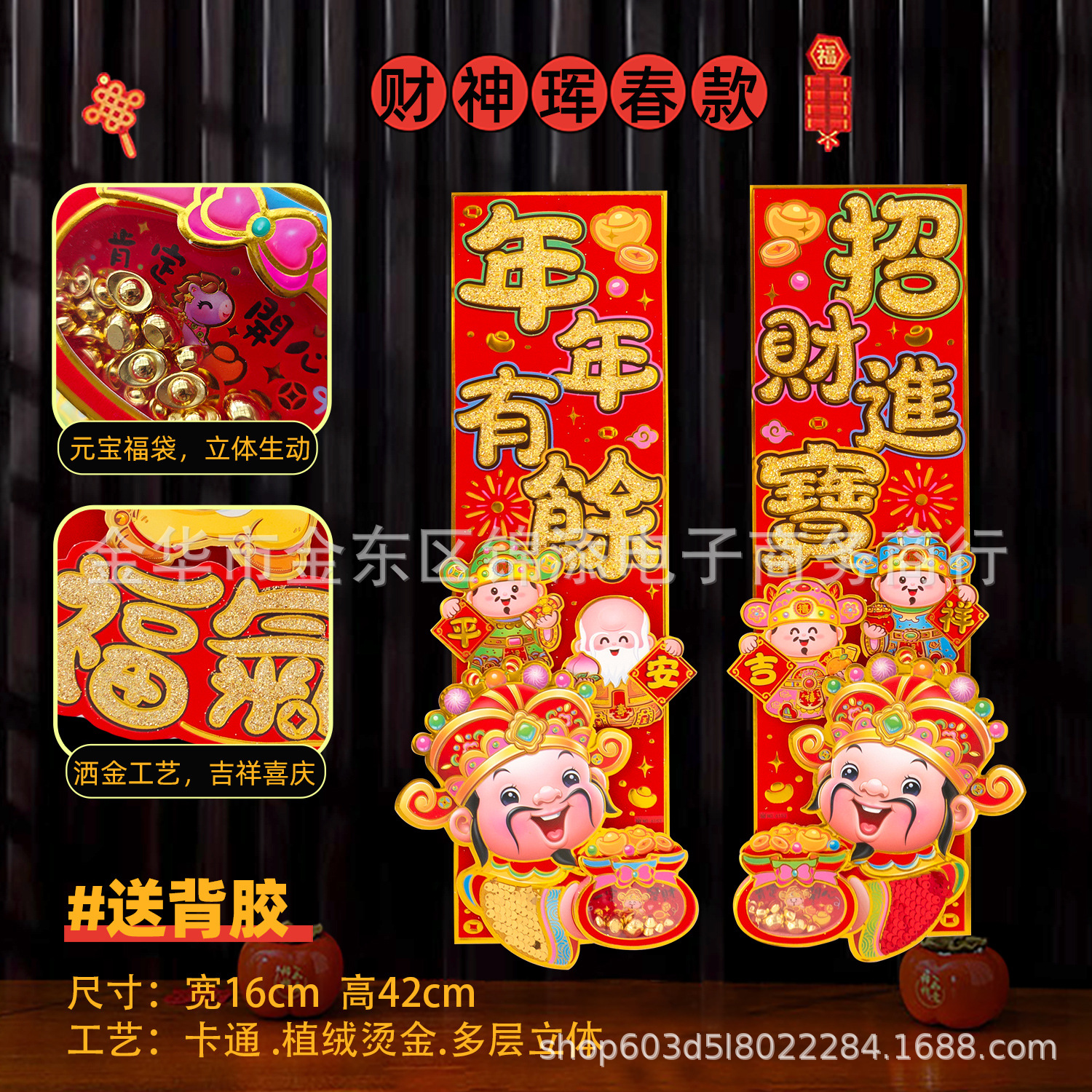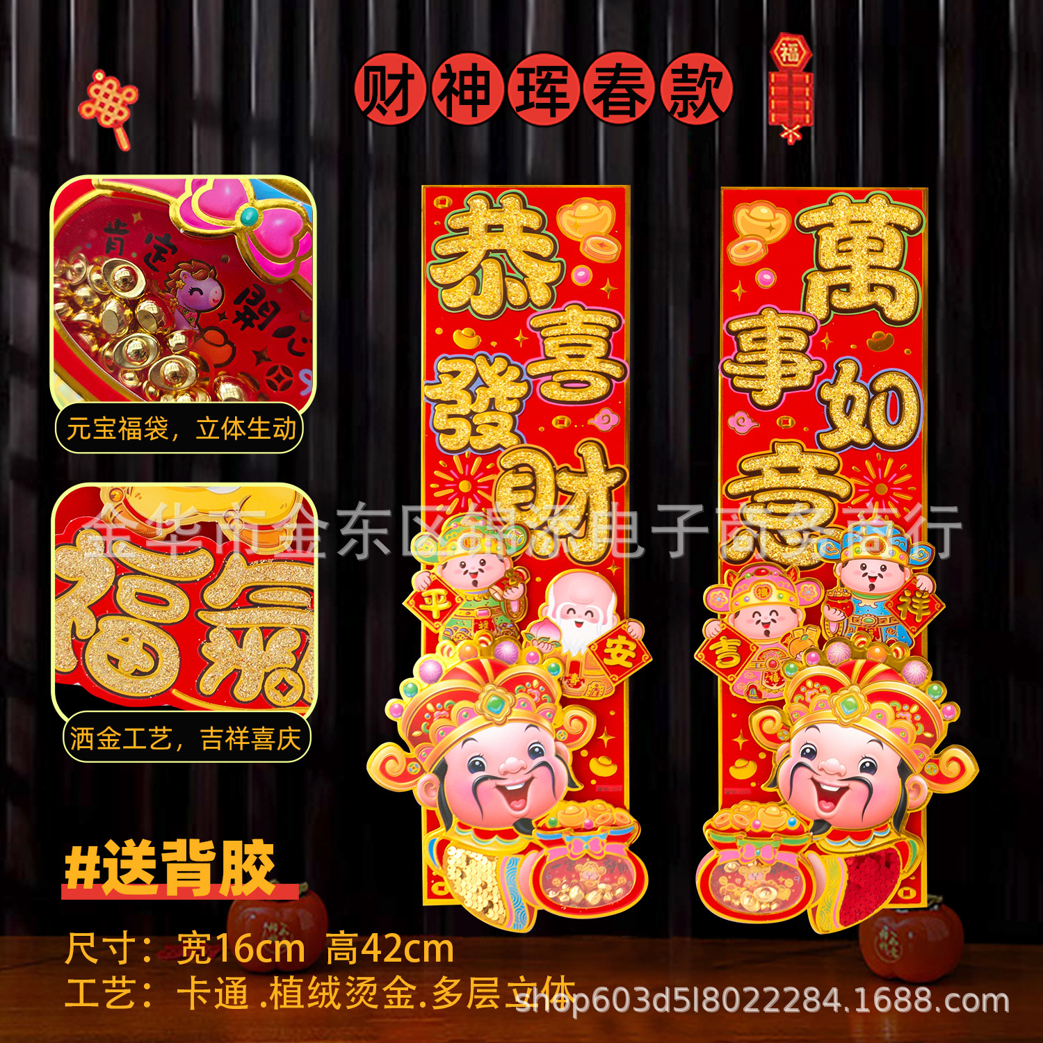 2026马年财神小对联卡通生肖挥春门贴四字挥春横批春节立体春联贴