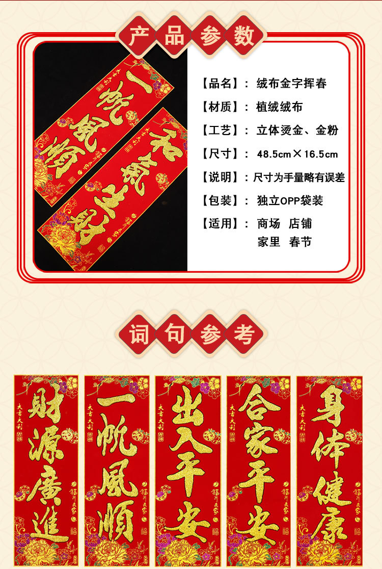 2026年马年新款年年好绒布背胶挥春撒金粉四字小对联春联批发