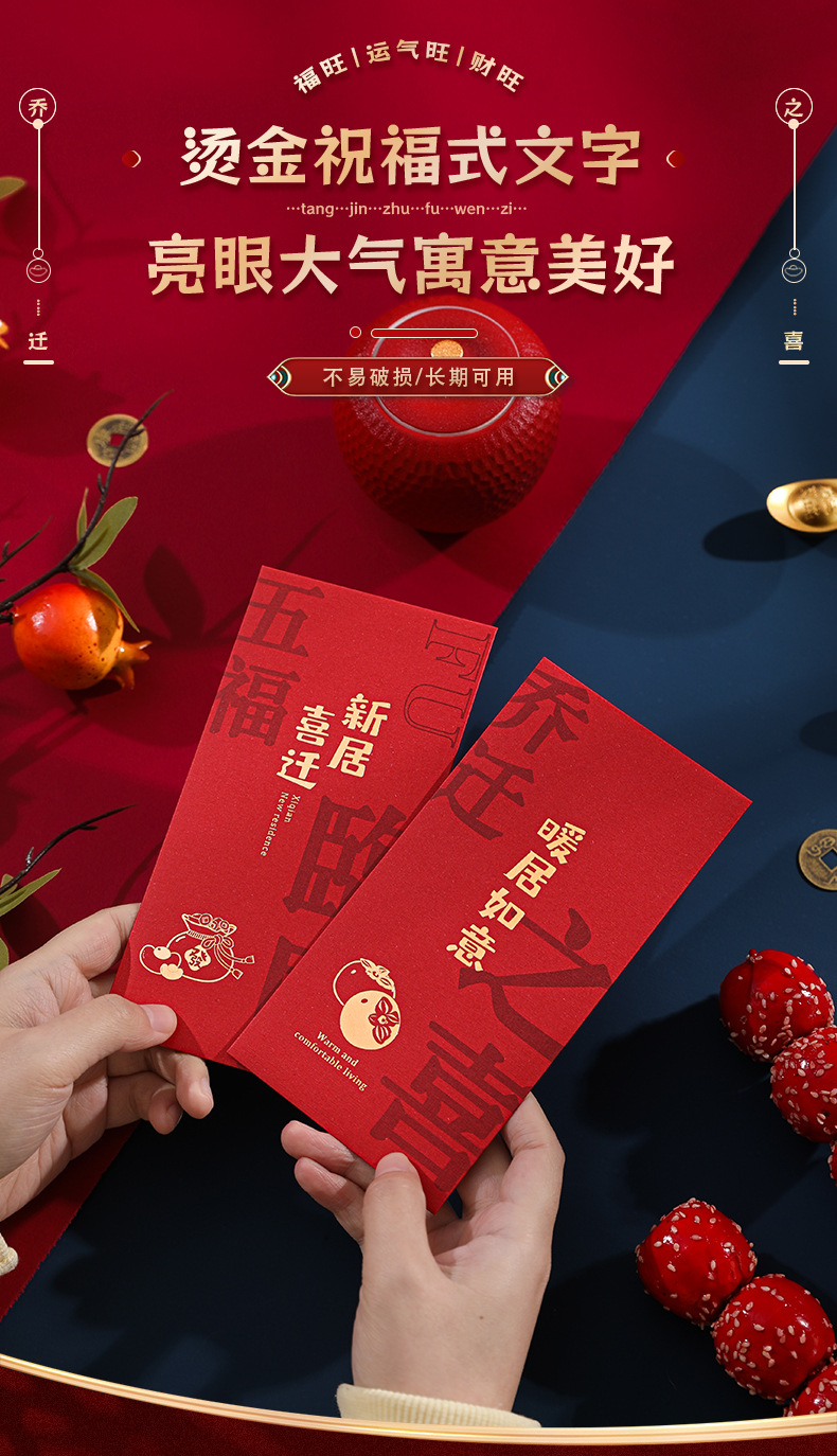 书法字体乔迁之喜红包新居红包入宅暖居进宅红包搬家创意红包袋子