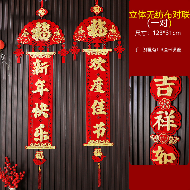 2025新款蛇年春节植绒无纺布对联过年福字春联毛毡串新年装饰布置