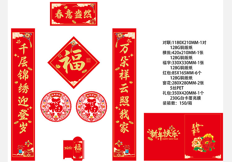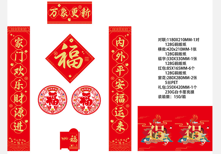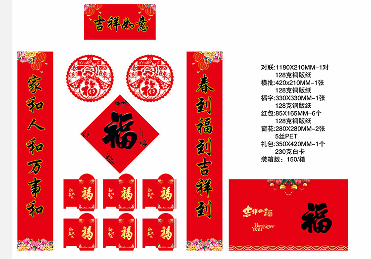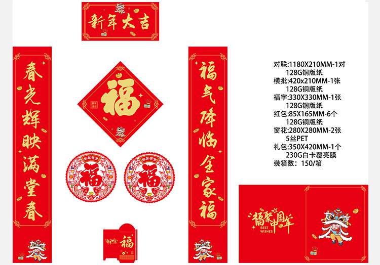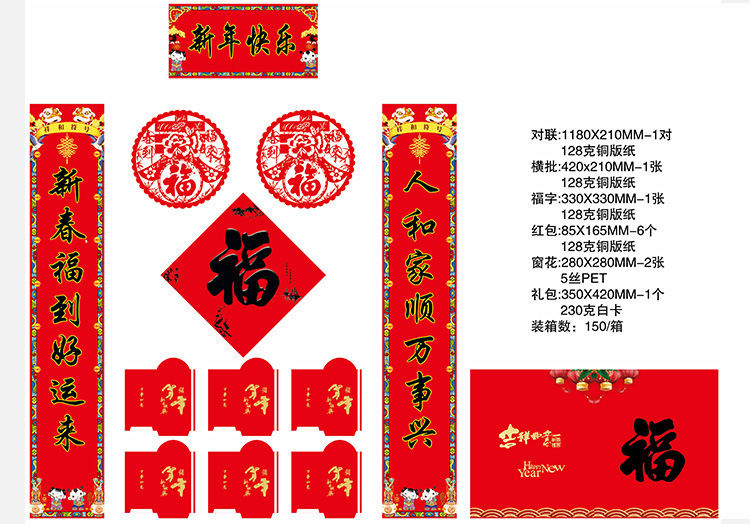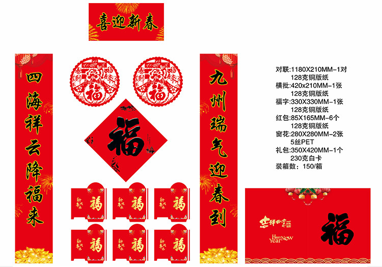 1.18米新年春节企业广告春联定制对联福字大礼包套装现货批发红包