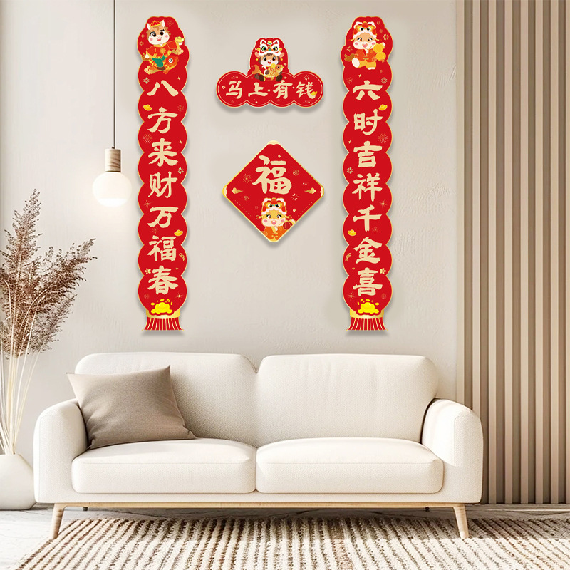对联春联新年家用装饰粘贴易斯易贴自粘烫金喜庆春节用品工厂批发