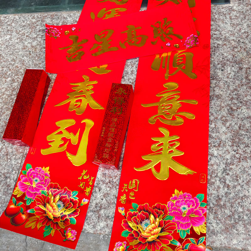 新款植绒专版生意对子对联生意兴隆植绒春联门店开业大吉生意对联
