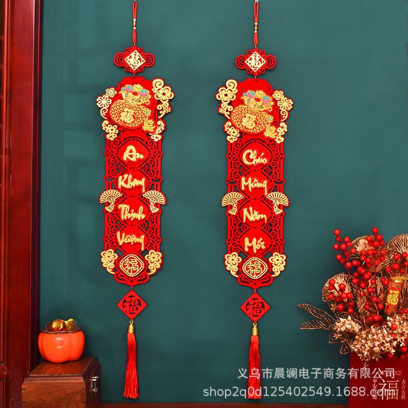 专供越南文字春节对联挂件植绒印花新年挂饰外贸专供喜庆装饰批发