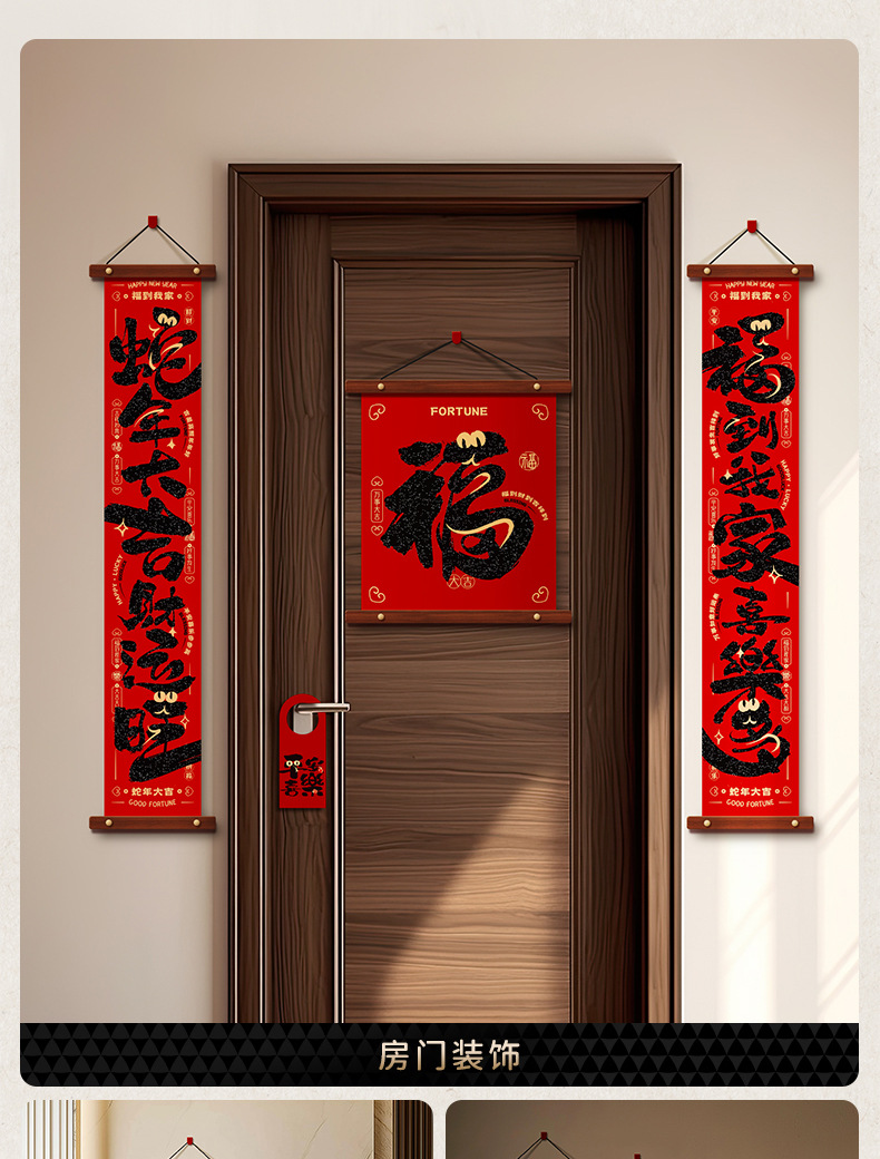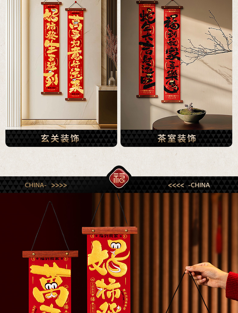 蛇年对联木挂对联新年装饰实木框架高档绒布烫金家用大门乔迁对联