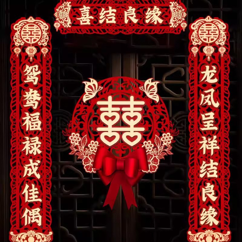 结婚对联男方大门喜联喜事新婚女方出嫁大门口出嫁婚房全套婚礼