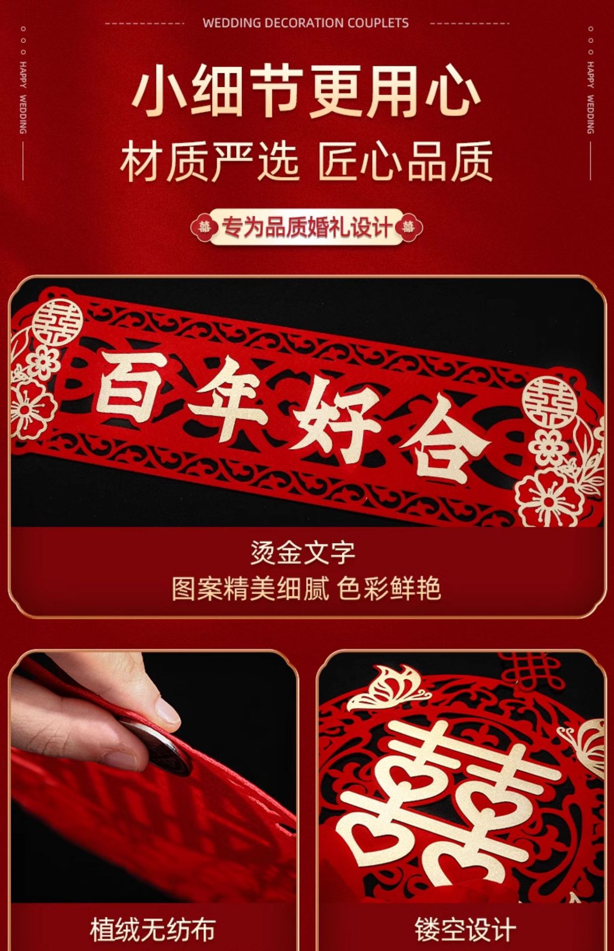 | [magnetic suction, stickers pairs] wedding couplet(【磁吸、胶贴双用款】结婚对联) | USD $1.81 | 82 pair available |