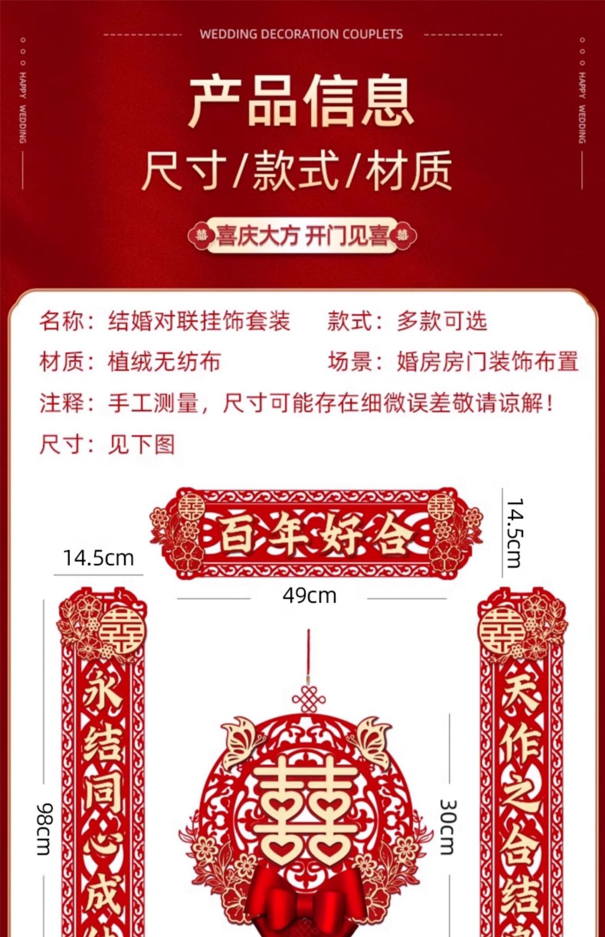 | [magnetic suction, stickers pairs] wedding couplet(【磁吸、胶贴双用款】结婚对联) | USD $2.54 | 48 pair available |