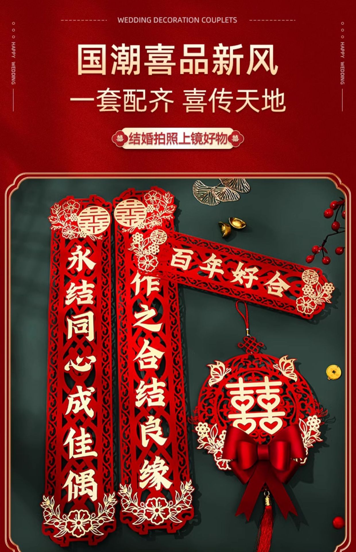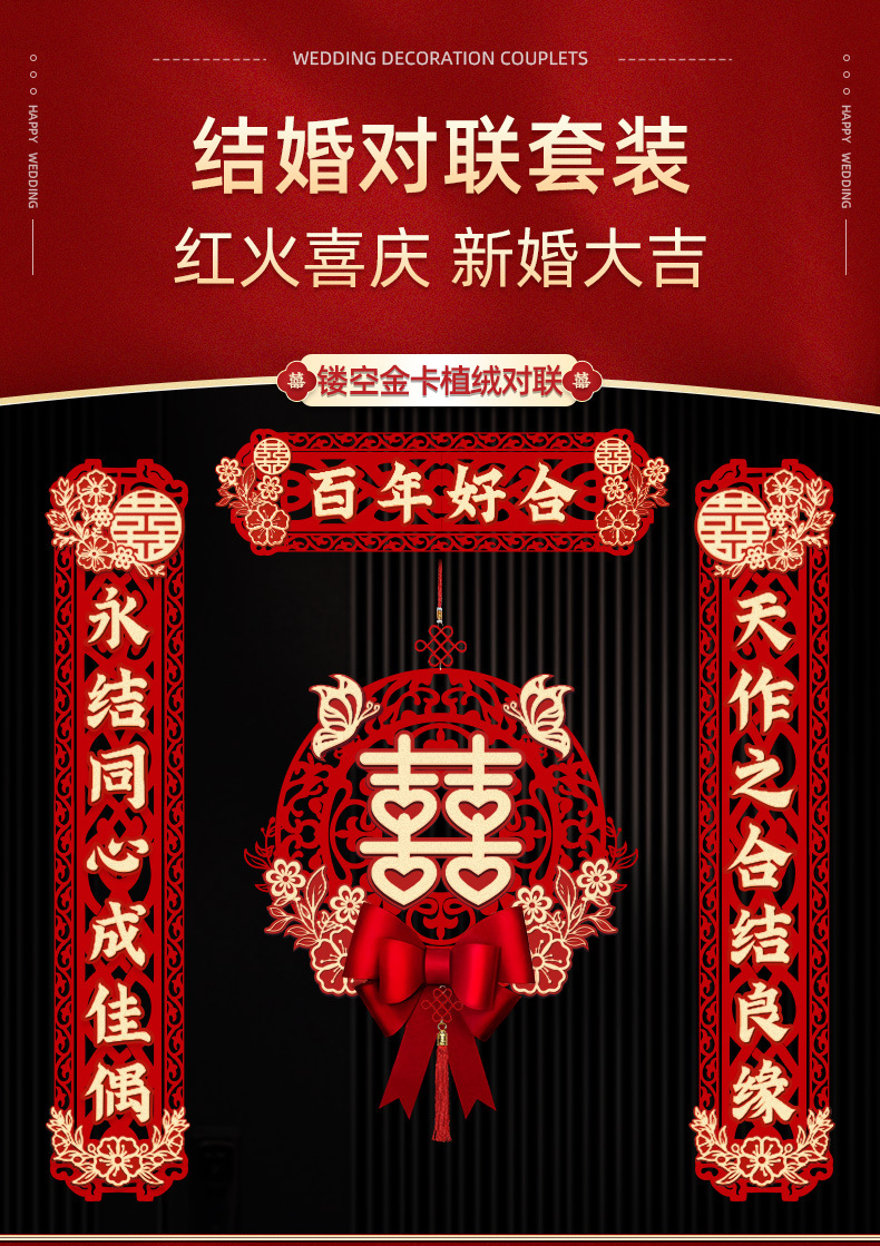 | [magnetic suction, stickers pairs] wedding couplet(【磁吸、胶贴双用款】结婚对联) | USD $2.68 | 43 pair available |